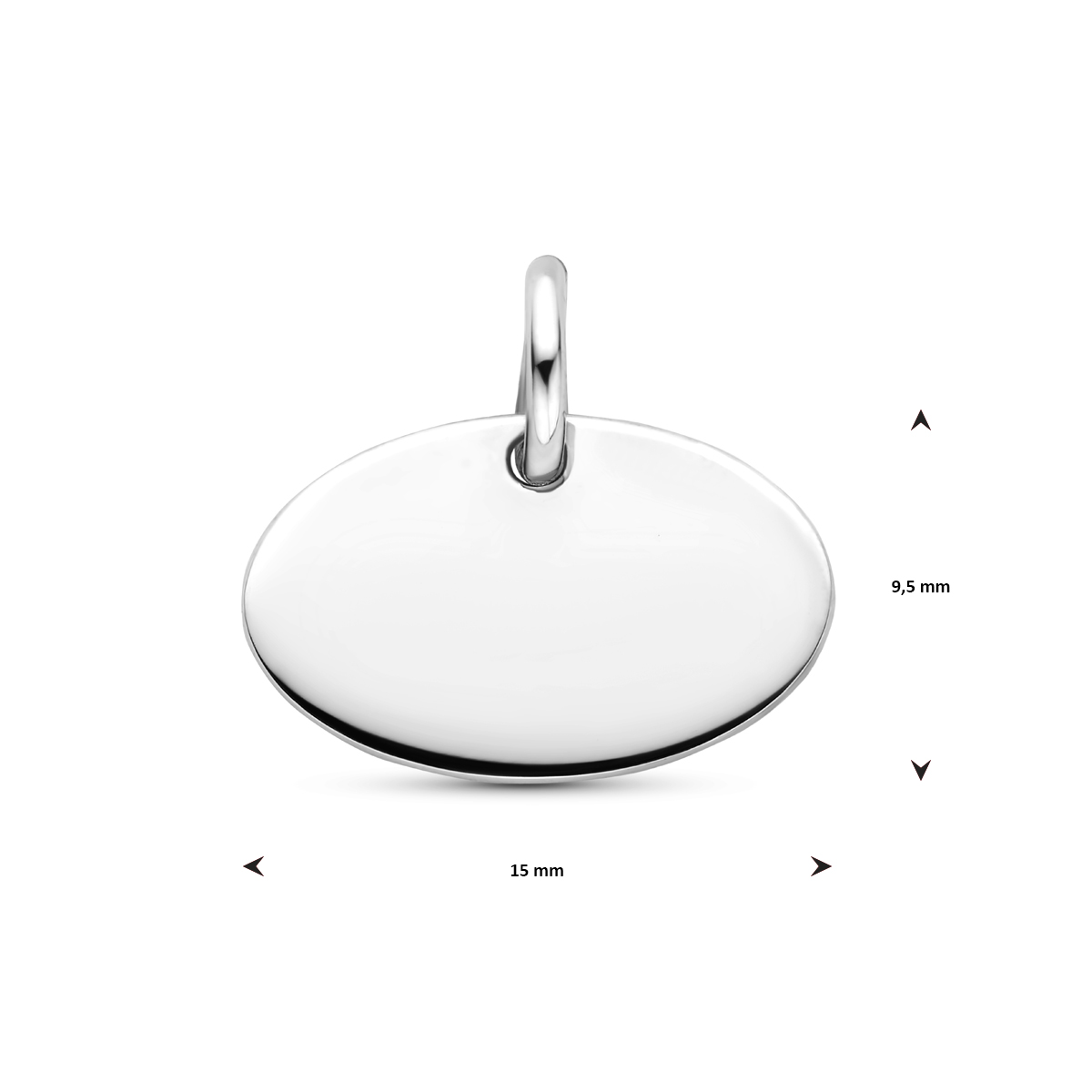 Gerhordineerd 925 zilveren graveerhanger met een totale hoogte van 13 mm. De graveerhanger heeft een afmeting van 9,5x15 mm.