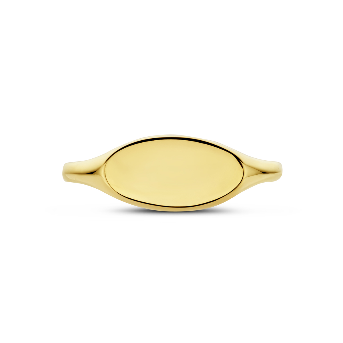 14k Geelgouden graveerring met een afmeting van 6.5x11.5mm.