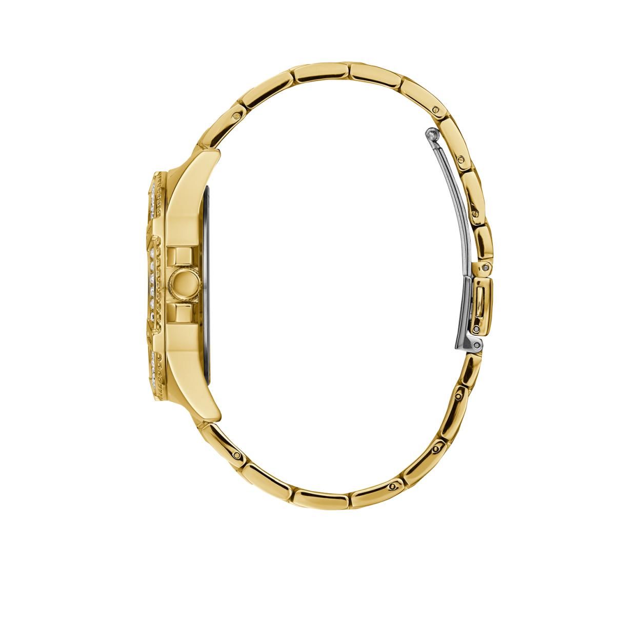 Houd jij van Bling? Dan is de nieuwe Lady Frontier wat voor jou. Dit nieuwe dames GUESS horloge heeft een ronde kast met een diameter van 40 mm. De lunet en de wijzerplaat zijn helemaal gezet met chrystals voor een sprankelend effect. De schakelband van 19cm sluit middels een vouwsluiting. Het horloge is tot 5 ATM waterdicht. Model: W1156L2