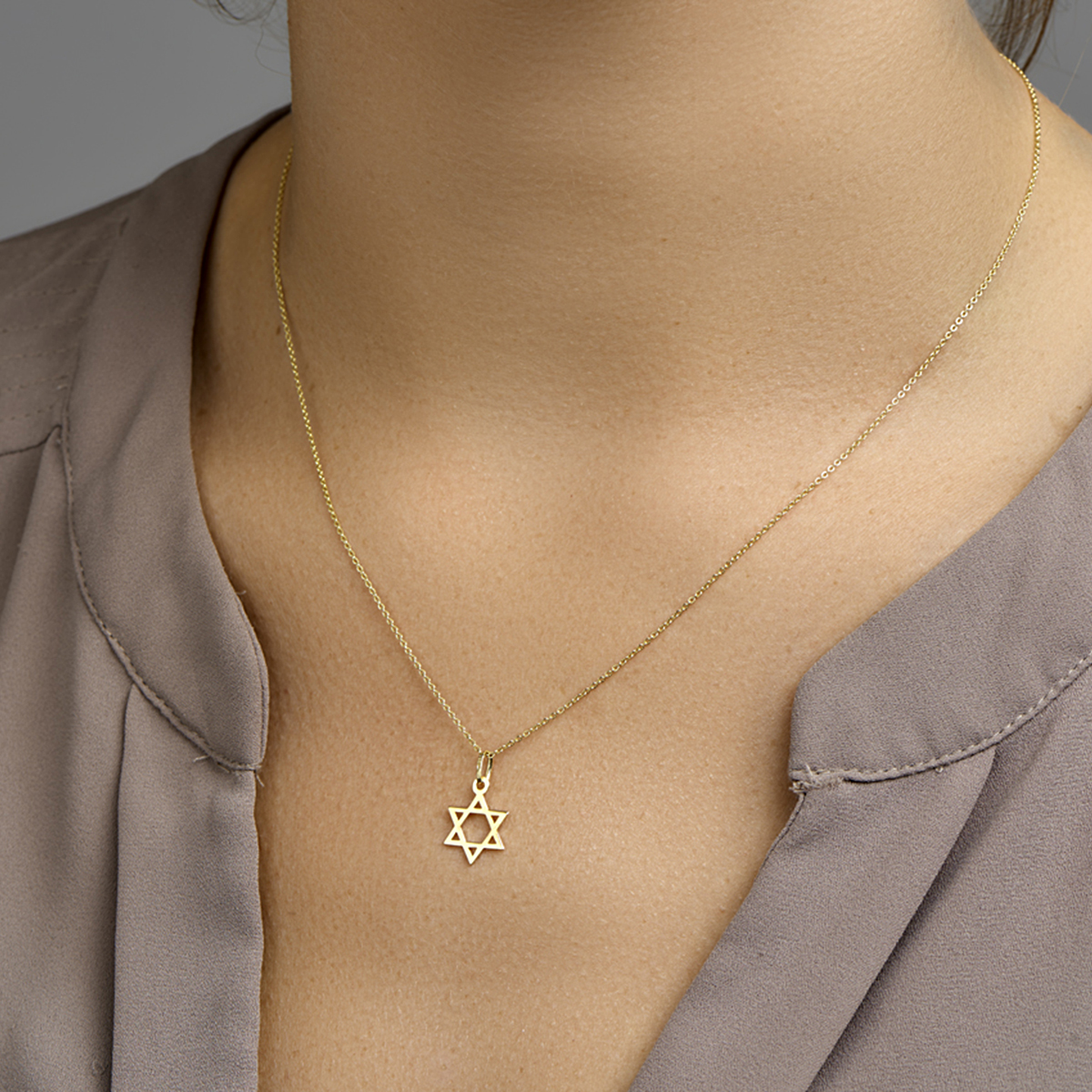 Beschrijving: Geelgouden bedel in de vorm van een davidster van 12mm uitgevoerd met een stevig hangoog. De davidster of davidschild  is een spiritueel symbool in de vorm van een hexagram, een combinatie van twee gelijkzijdige driehoeken.