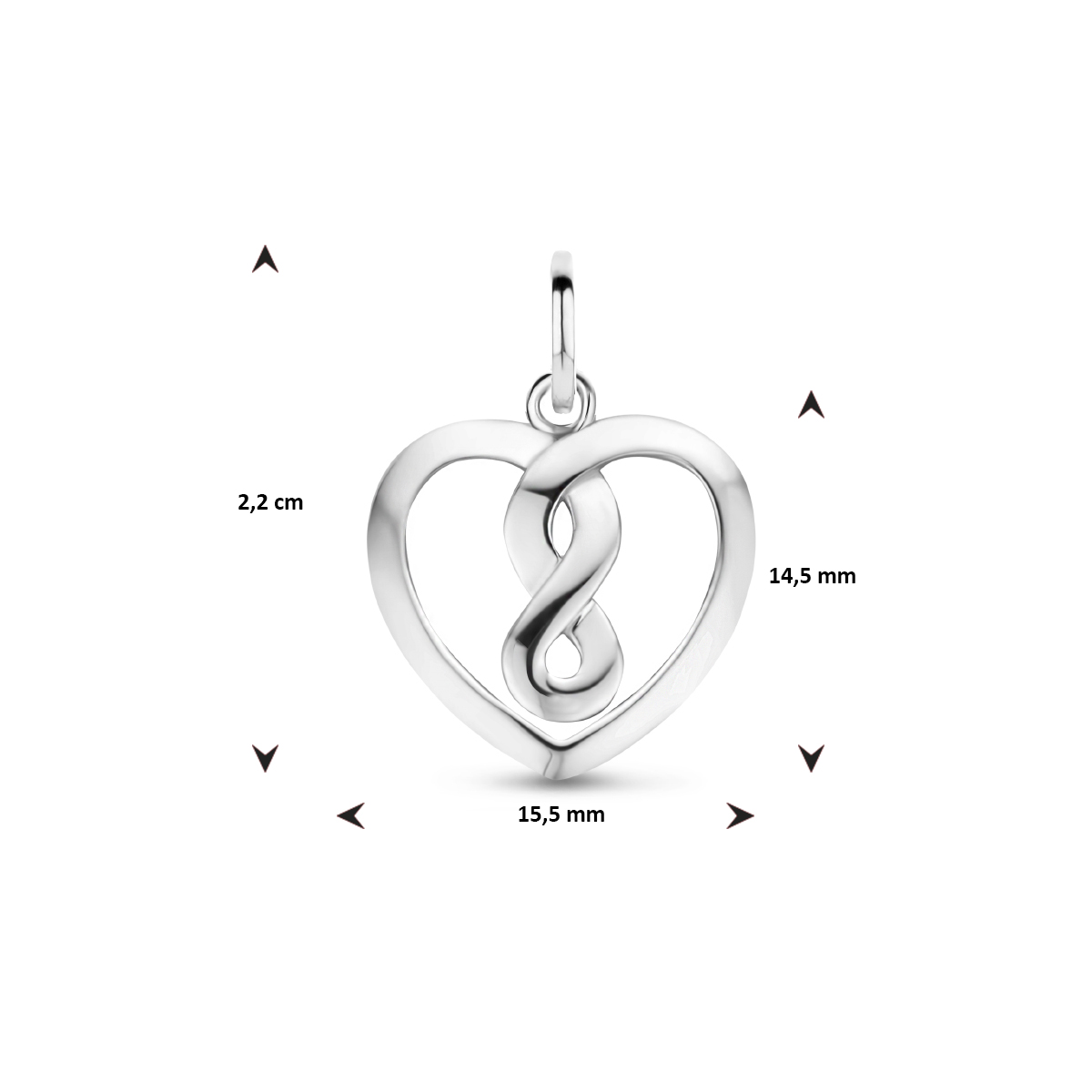 Gerhodineerd 925 zilveren hanger in de vorm van een hartje. Het hartje heeft een afmeting van 14.5x15.5mm