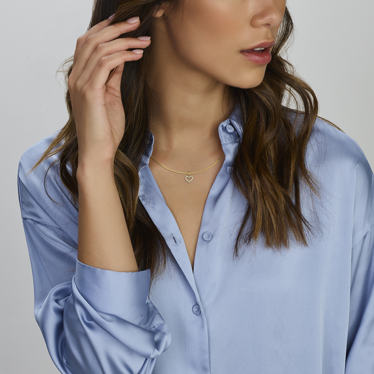 Beschrijving: Geelgouden hanger met een hart van zirkonia.