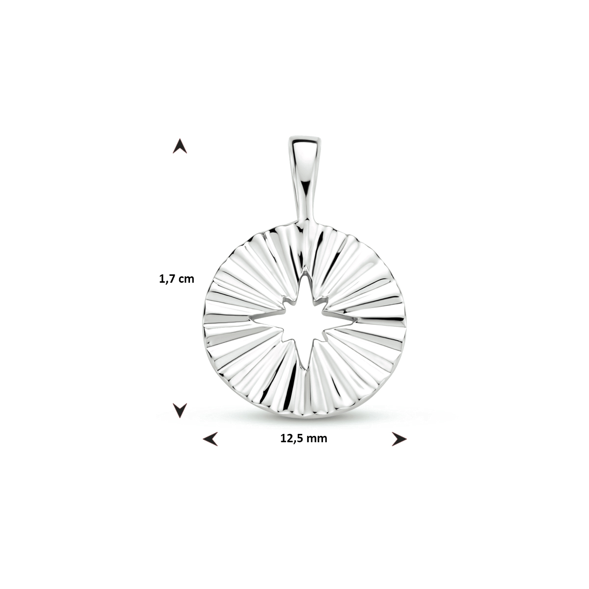 Gerhodineerd 925 zilveren ronde hanger. De hanger heeft een totale hoogte van 1.7cm en een diameter van 12.5mm.