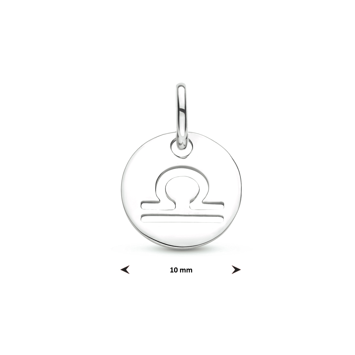 Gerhodineerd 925 zilveren hanger uitgevoerd met het sterrenbeeld weegschaal. De hanger heeft een totale hoogte van 1.3cm en een diameter van 10mm.