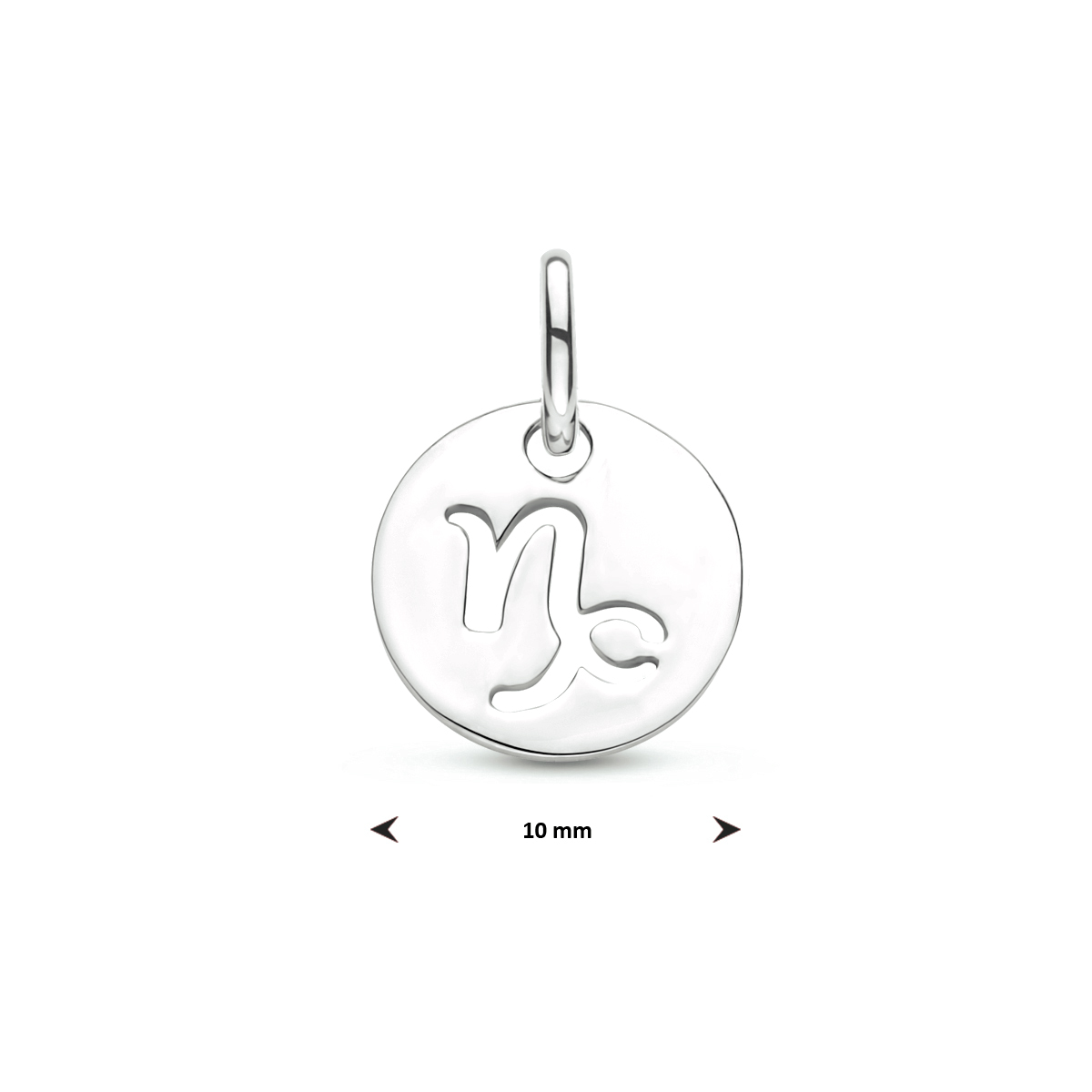 Gerhodineerd 925 zilveren hanger uitgevoerd met het sterrenbeeld steenbok. De hanger heeft een totale hoogte van 1.3cm en een diameter van 10mm.