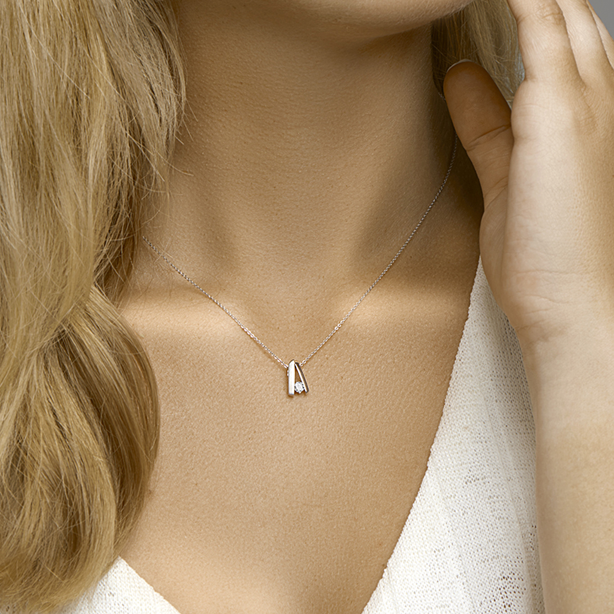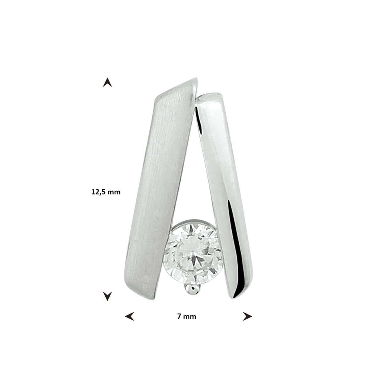 Gerhodineerd 925 zilveren hanger uitgevoerd met een heldere zirkonia en een poli/matte afwerking. De hanger heeft een afmeting van 12.5x7mm.