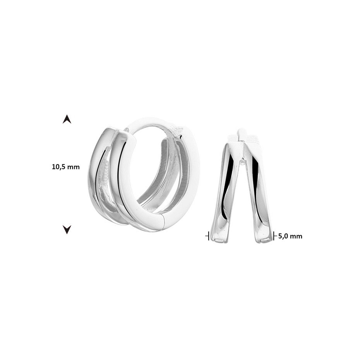 Gerhodineerd 925 zilveren klapoorringen. De oorringen hebben een afmeting van 10.5x5mm.