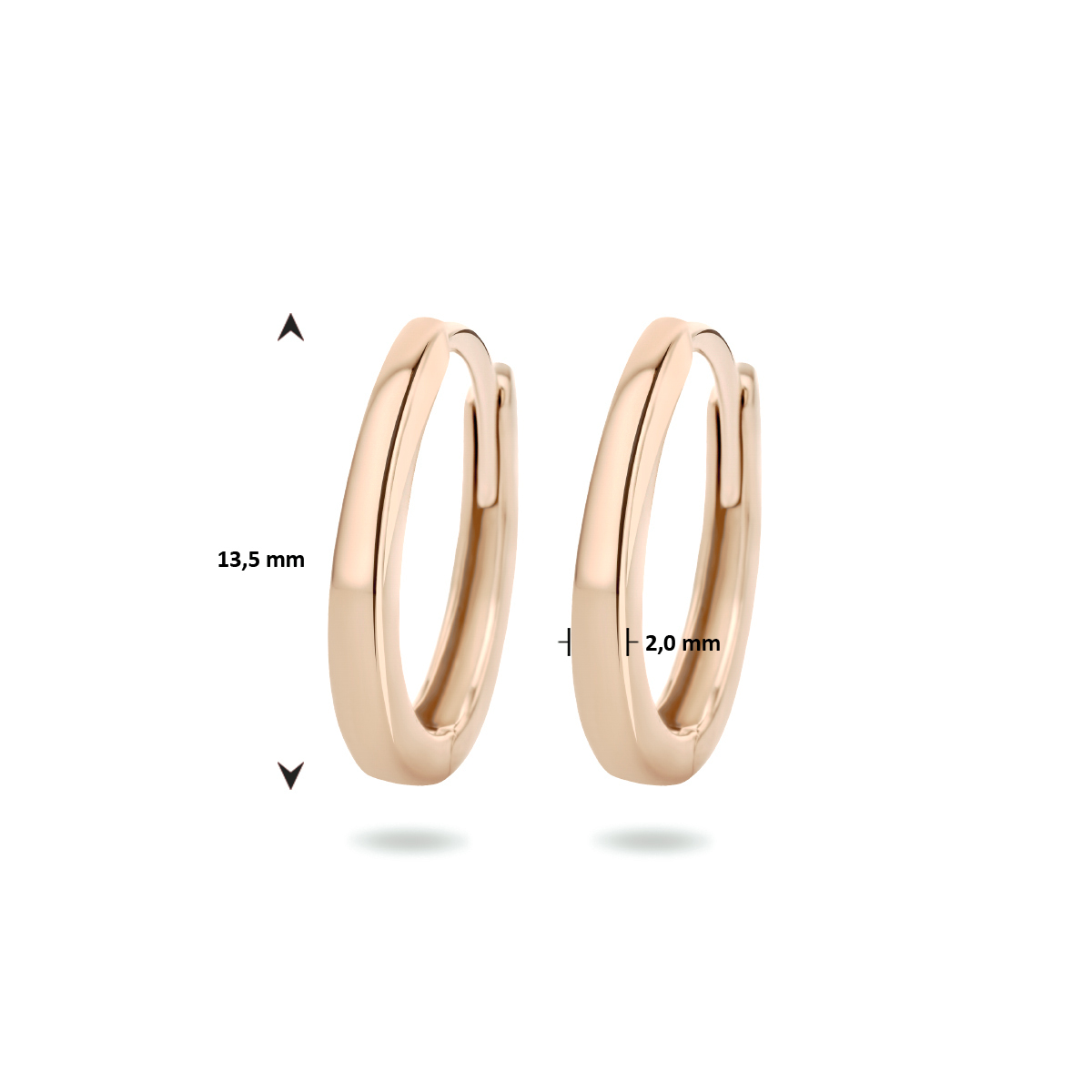 14k Rosegouden klapoorringen. De klapoorringen hebben een afmeting van 13.5x2mm.