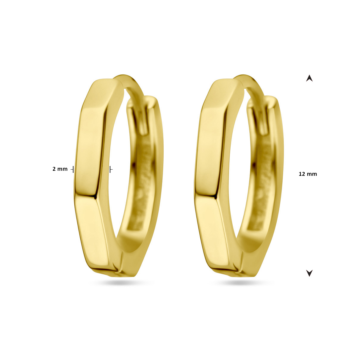 Geelgoud op 925 zilveren klapoorringen met een afmeting van 12x2.0mm.