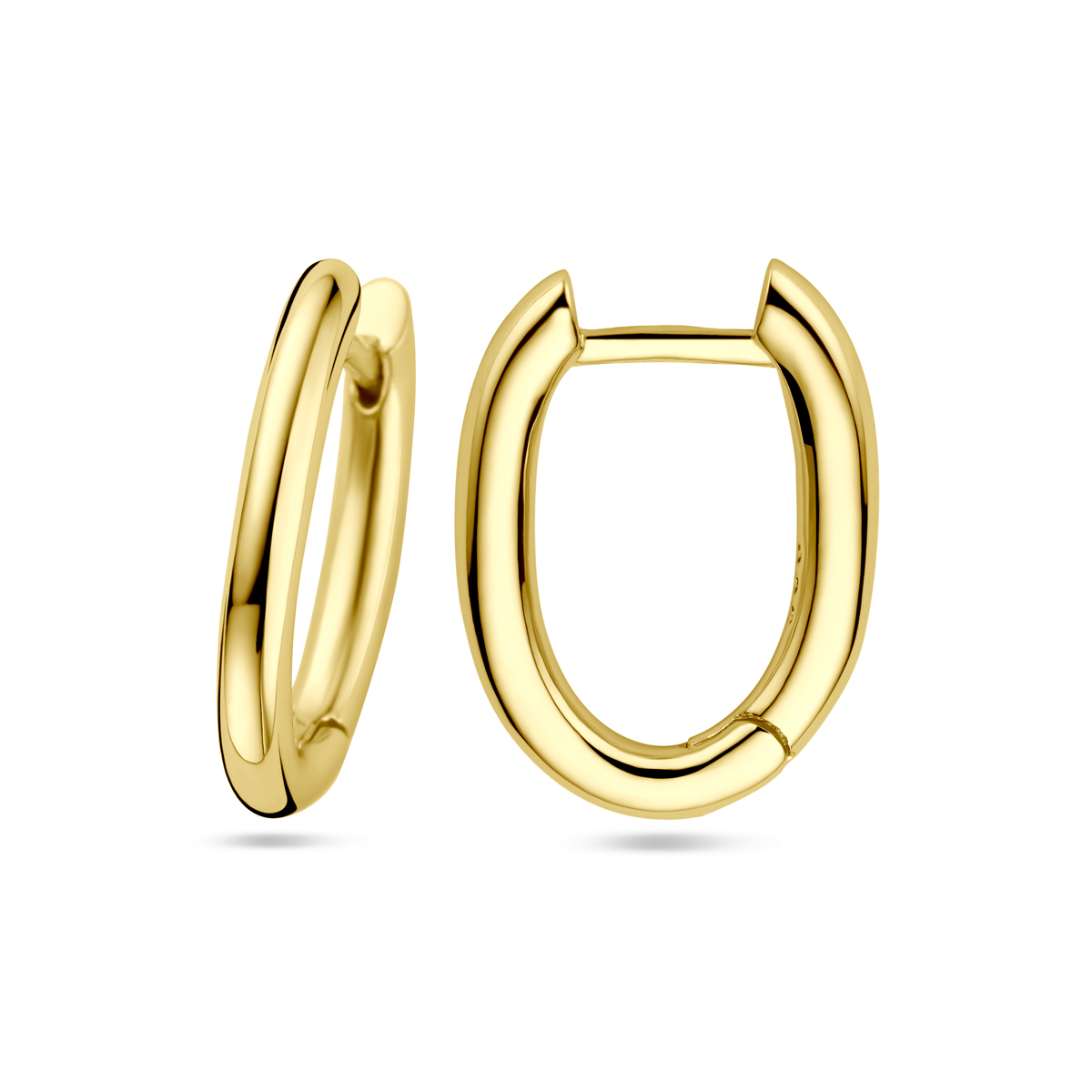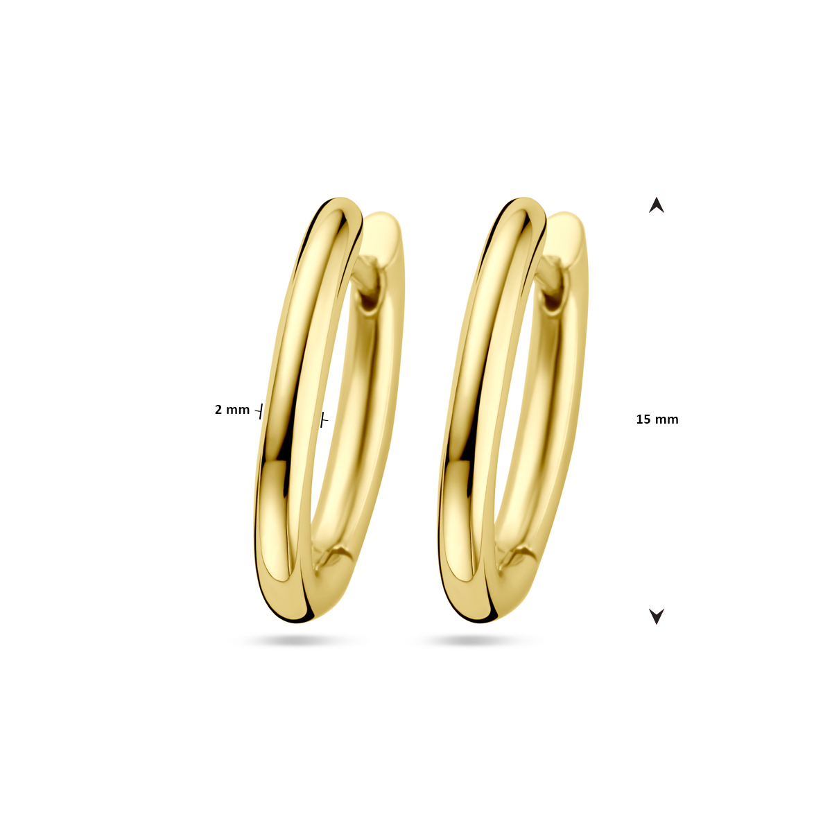 Geelgoud op 925 zilveren klapoorringen met een afmeting van 15x2mm. Geen garantie op de plating.