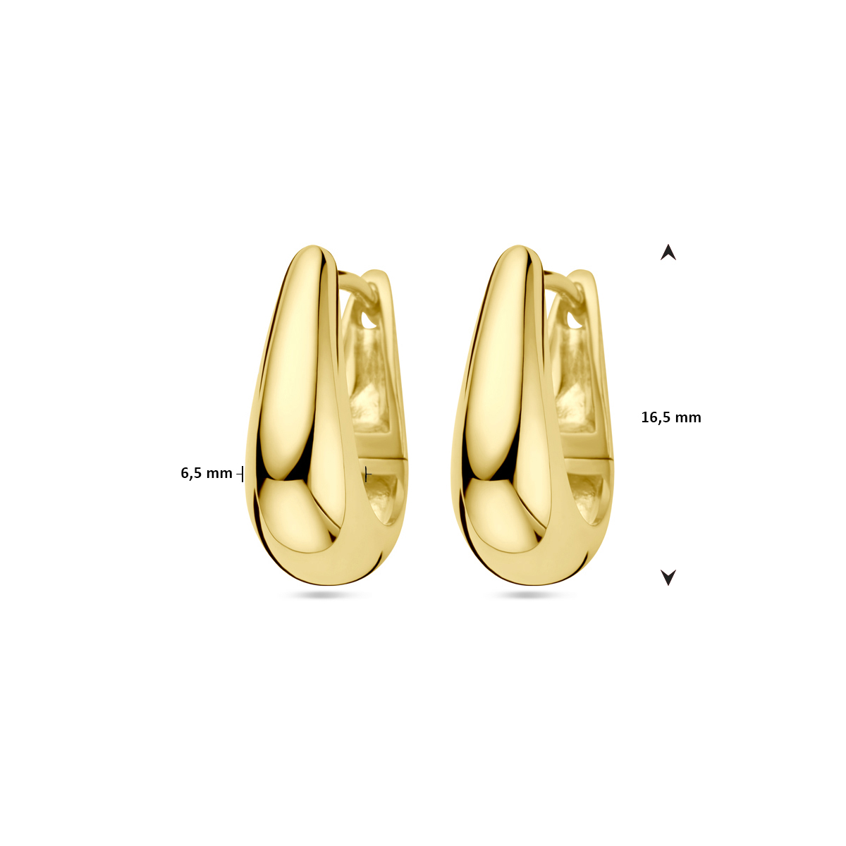 Geelgoud op 925 zilveren klapoorringen met een afmeting van 16.5x6.5mm. Geen garantie op de plating.