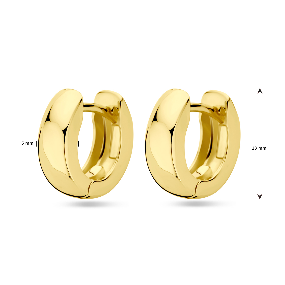 Geelgoud op 925 zilveren klapoorringen met een afmeting van 13x5mm. Geen garantie op de plating.