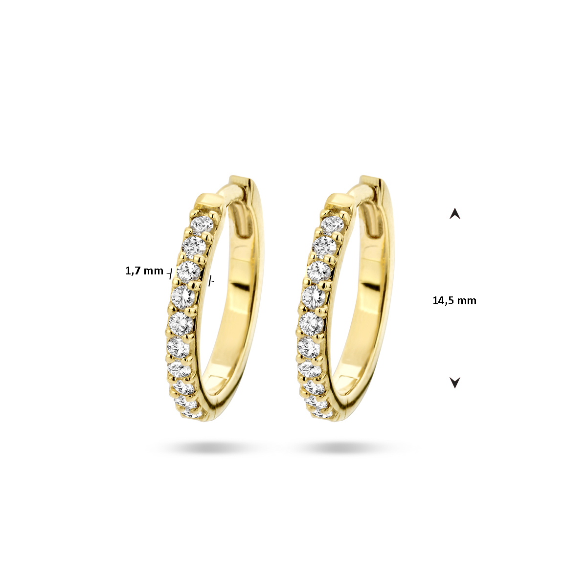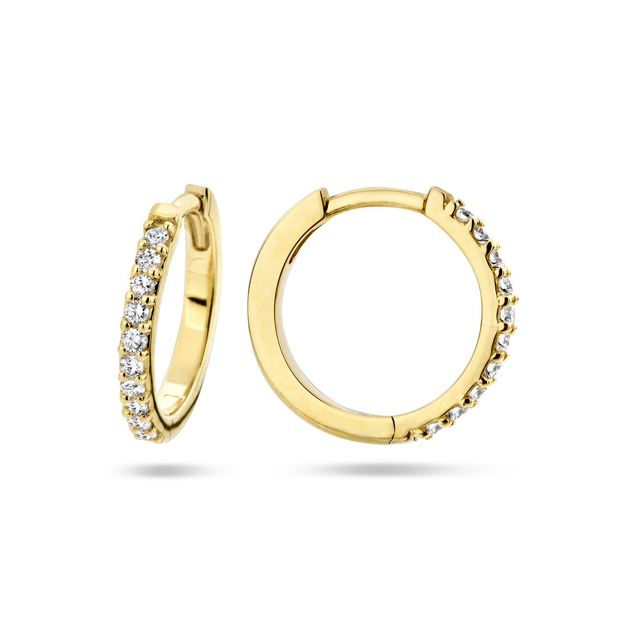 Beschrijving: Geelgouden klapcreolen met diamant.