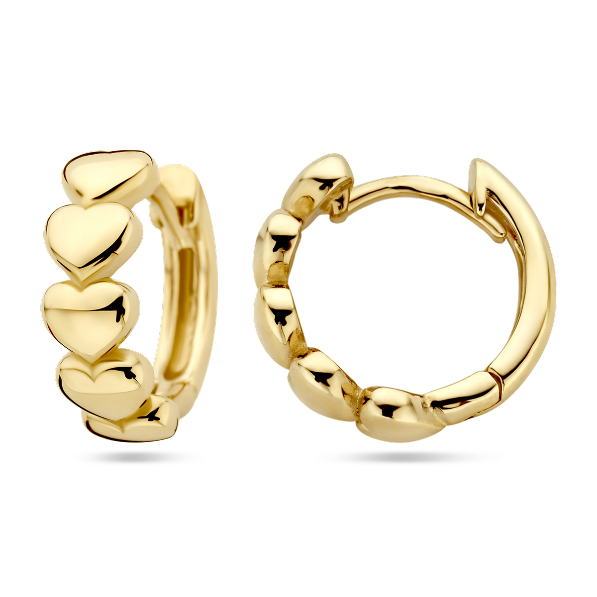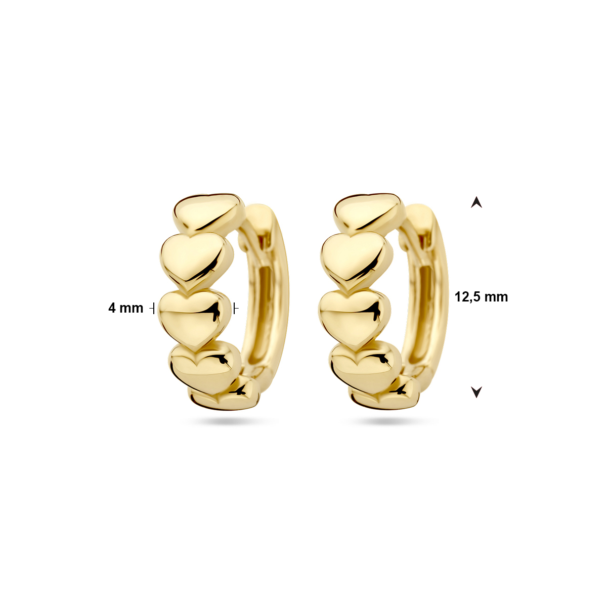 14k Geelgouden klapoorringen uitgevoerd met hartjes. De afmetingen zijn 12,5mm x 4mm.