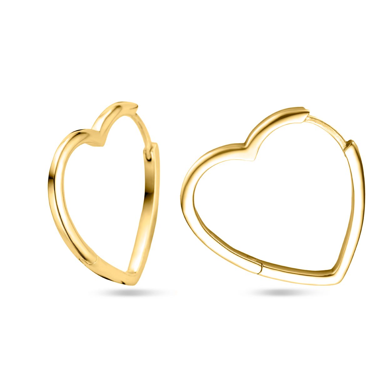 Geelgoud op 925 zilveren oorringen uitgevoerd in de vorm van een hartje. De oorringen hebben een totale hoogte van 25mm. Geen garantie op de plating.
