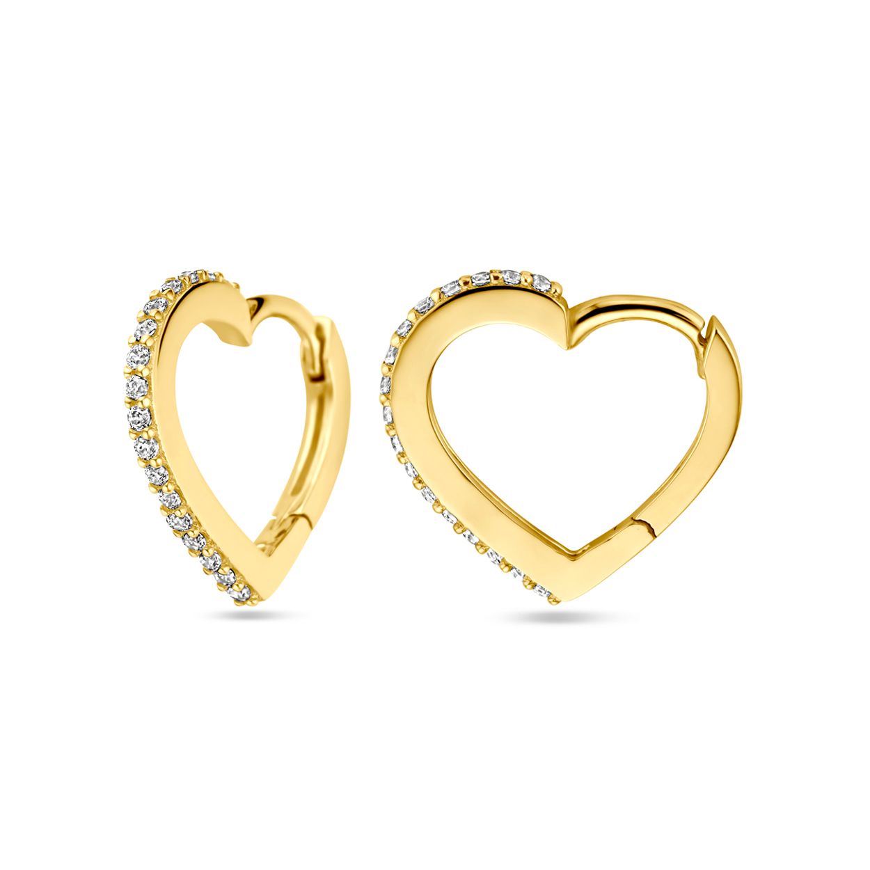 14k Geelgouden klapoorringen uitgevoerd in de vorm van een hart met zirkonia. De oorringen hebben een afmeting van 12.5x1.5mm.