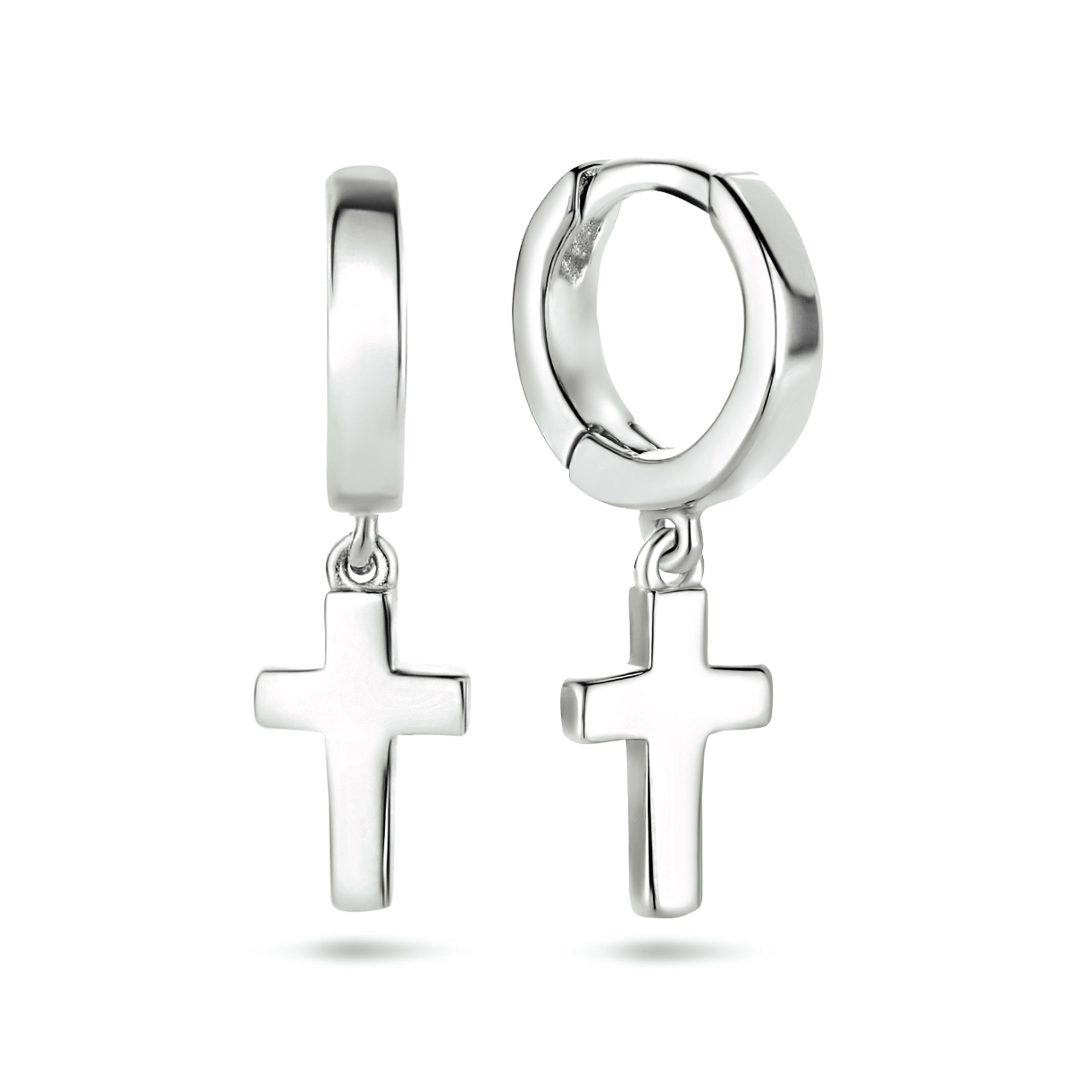 Gerhodineerd 925 zilveren klapoorringen uitgevoerd met een kruis. Het kruis heeft een afmeting van 9x6mm.
