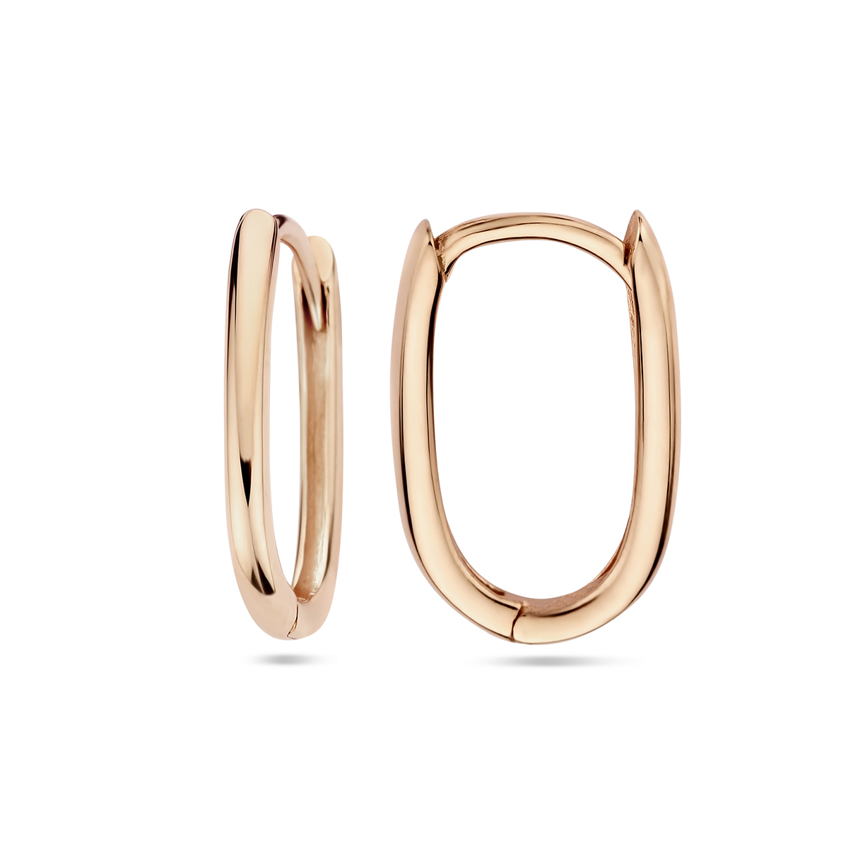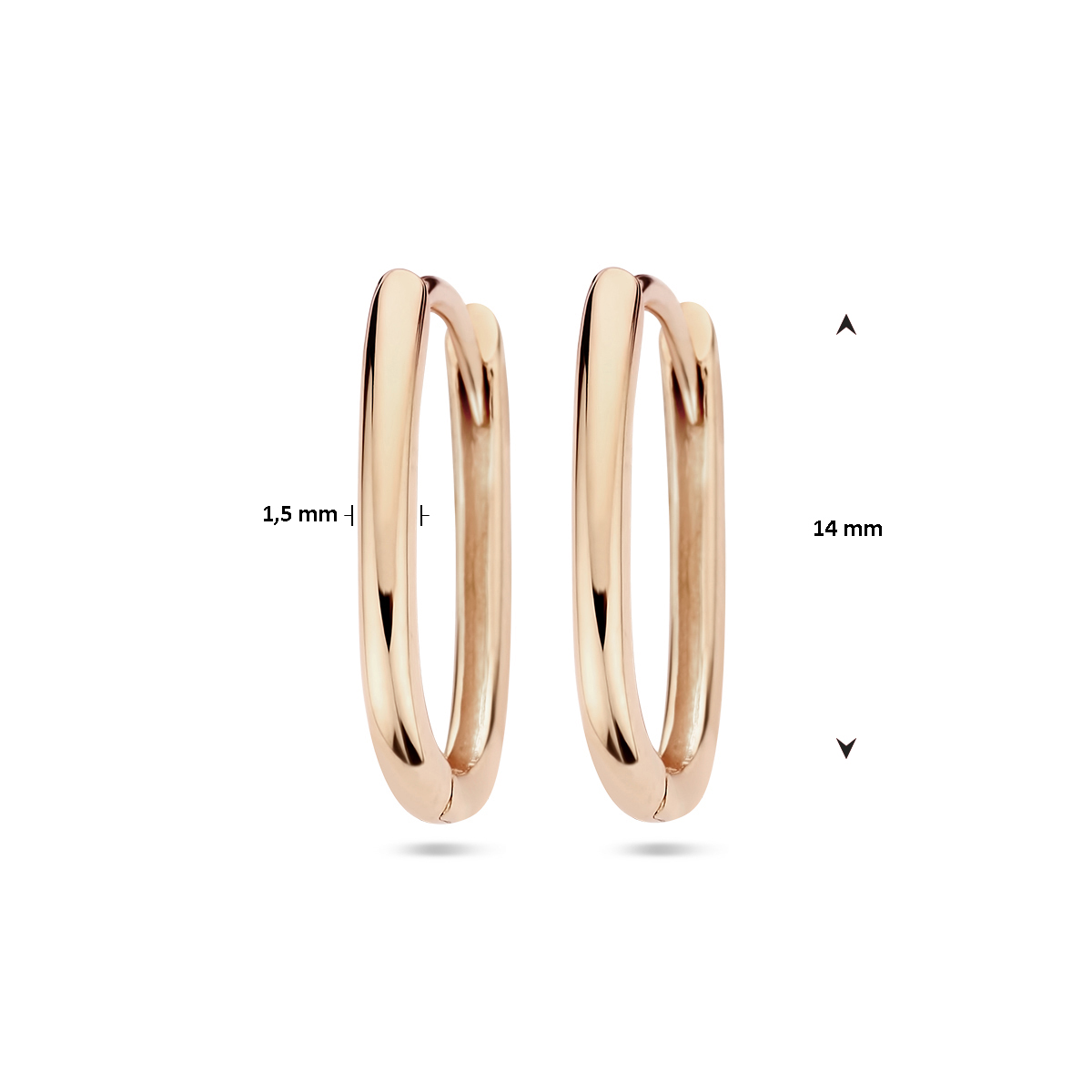 14k Rosegouden paperclip klapoorringen met een hoogte van 14mm.