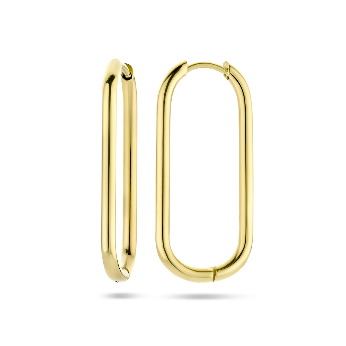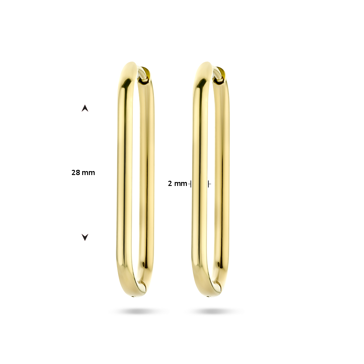 Stalen paperclip klapoorringen met een breedte van 2mm. De oorringen hebben een goudkleurige ion plating.
