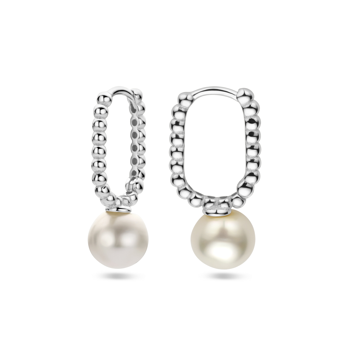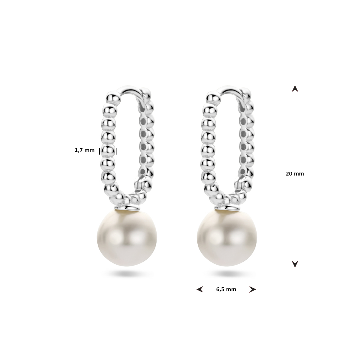 Gerhodineerd 925 zilveren klapoorringen uitgevoerd met synthetisch parel. De klapoorringen hebben een afmeting van 20x1.7mm.