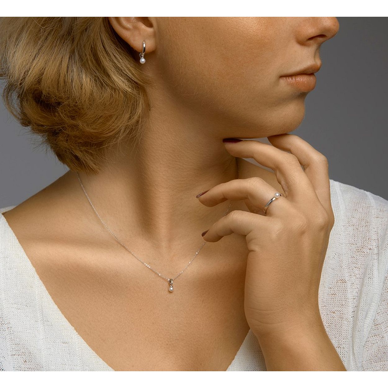Gerhodineerd 925 zilveren klapoorringen uitgevoerd met een zoetwaterparel. De oorringen hebben een afmeting van 12x2mm. De parel heeft een diameter van 4.5mm.