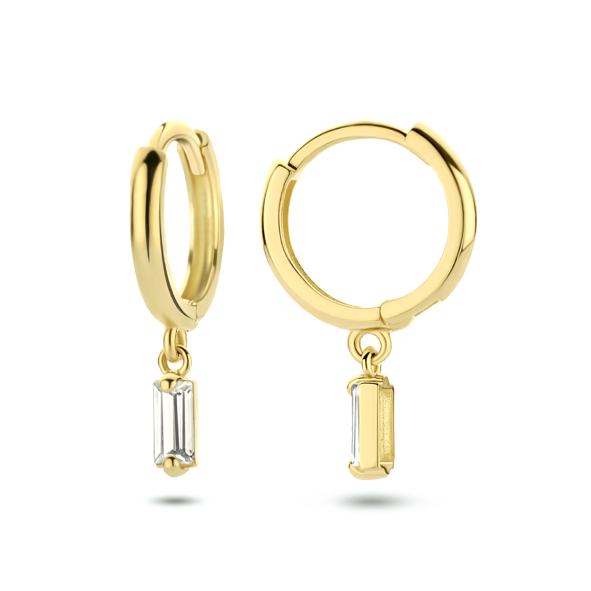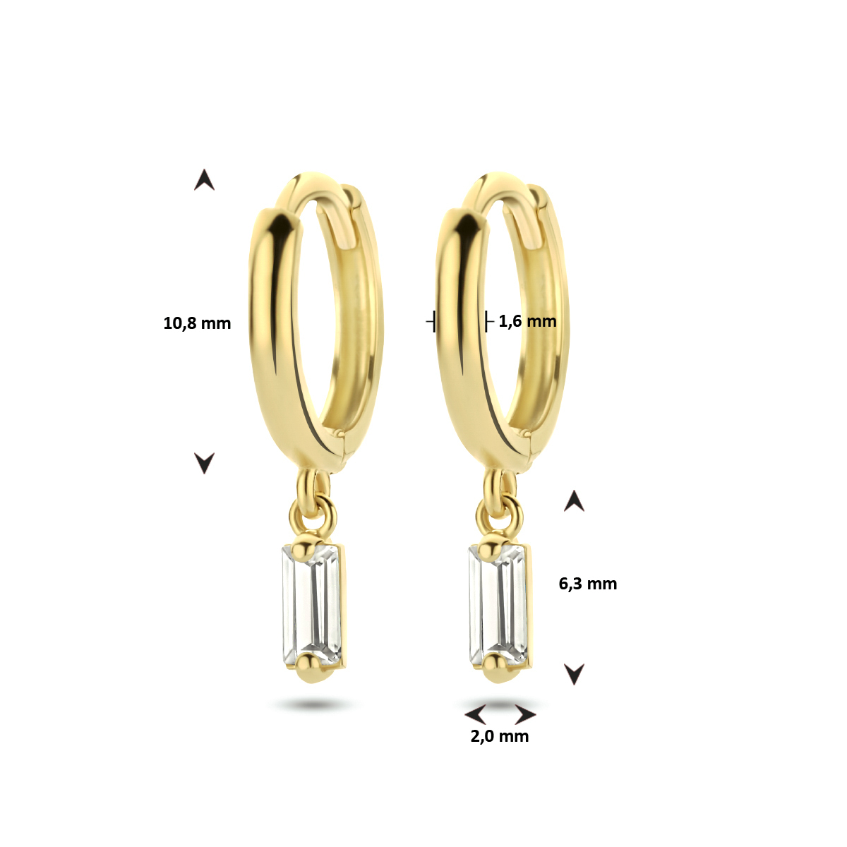 14k Geelgouden klapoorringen uitgevoerd met een schitterende zirkonia. De oorringen hebben een diameter van 10.8mm.