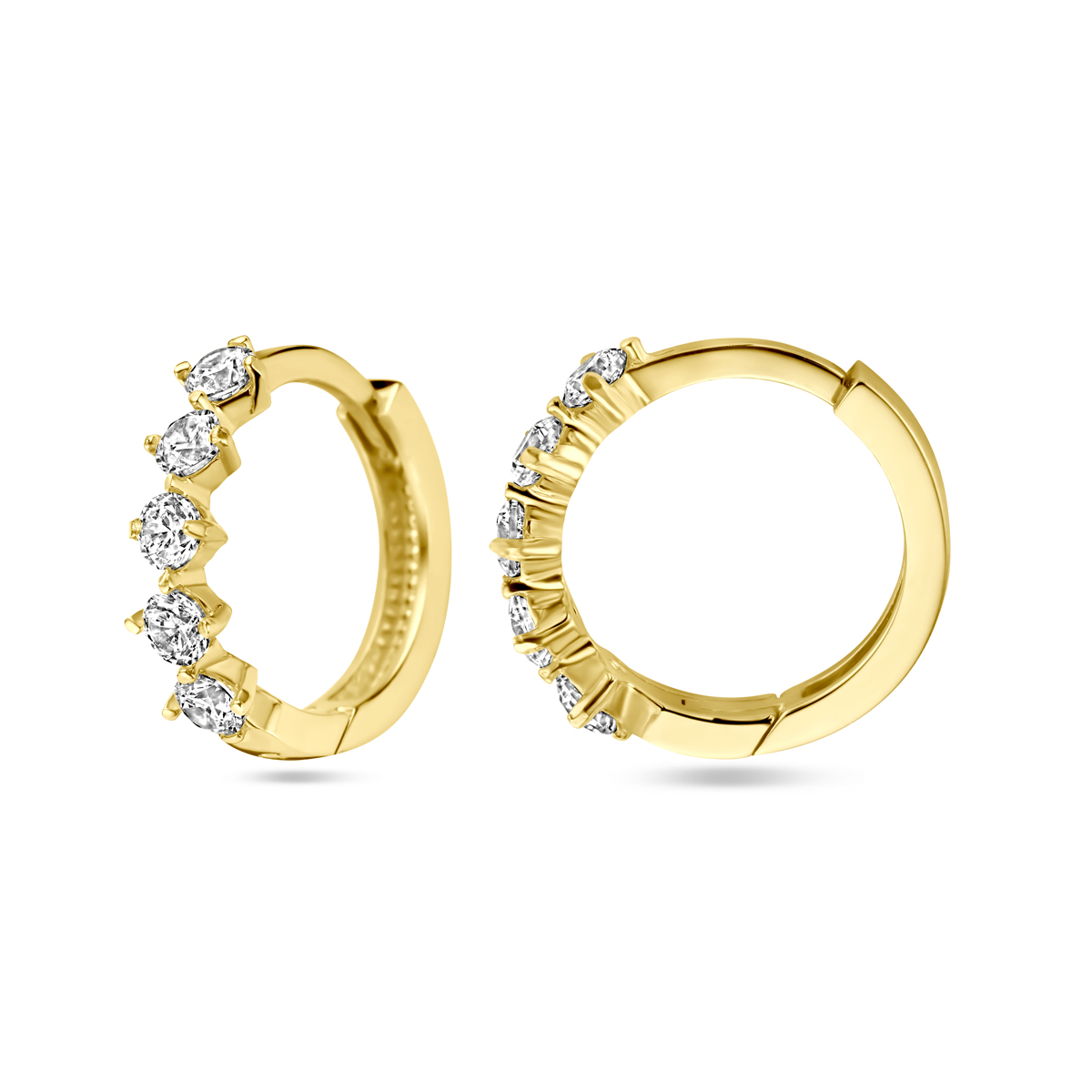 14k Geelgouden klapoorringen uitgevoerd met zirkonia. De oorringen hebben een diameter van 12mm.