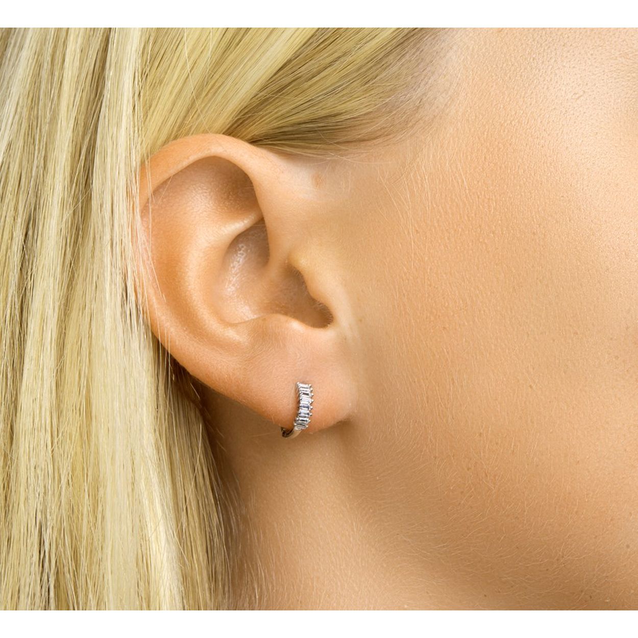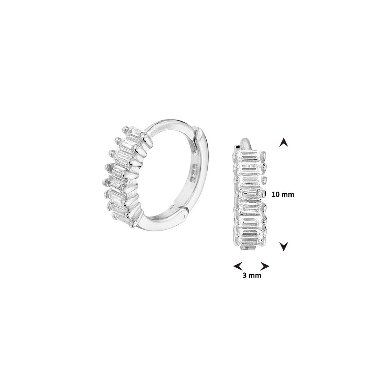 Gerhodineerd 925 zilveren oorringen met scharnier uitgevoerd met een schitterende zirkonia rij. De oorringen hebben een diameter van 10mm.