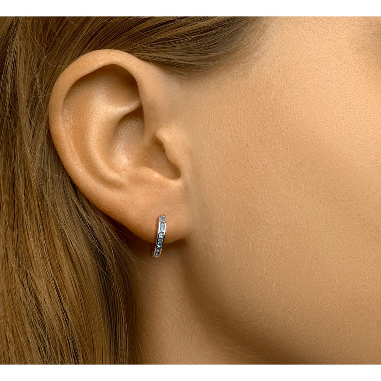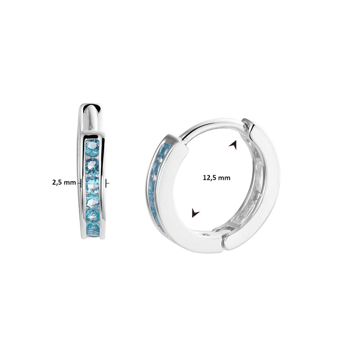 Gerhodineerd 925 zilveren klapoorringen uitgevoerd met schitterend blauw zirkonia en een scharnier. De oorringen hebben een diameter van 12.5mm.