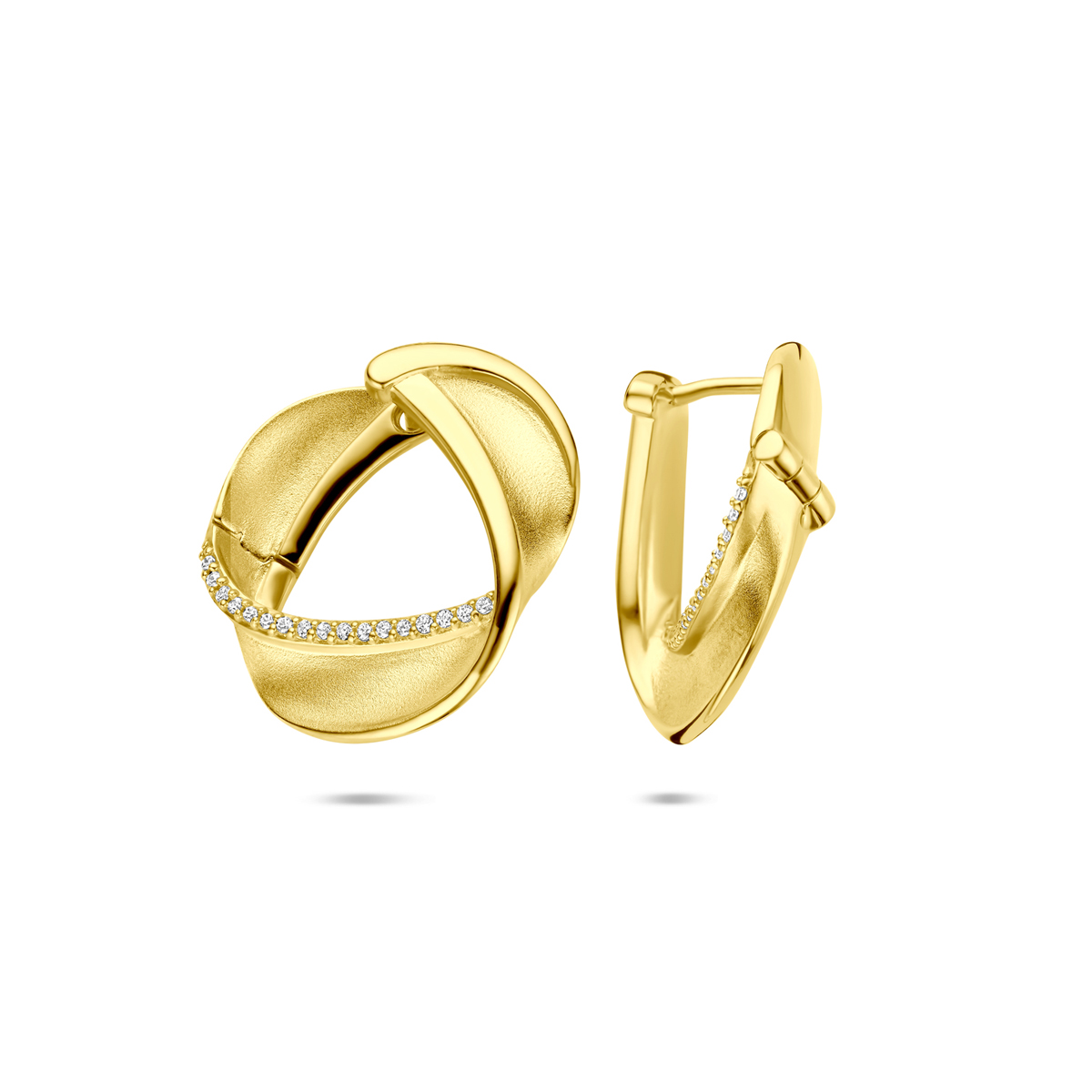 Verguld 925 zilveren klapoorringen uitgevoerd met zirkonia. De klapoorringen hebben een afmeting van 21.5x13mm. Geen garantie op plating.