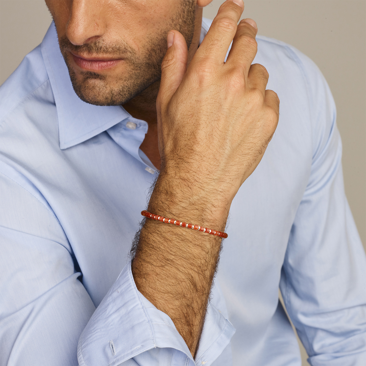 Gerhodineerd 925 zilveren armband met carneool stenen en een karabijn sluiting. De armband heeft een draaglengte van 20cm en een extensie van 3cm.