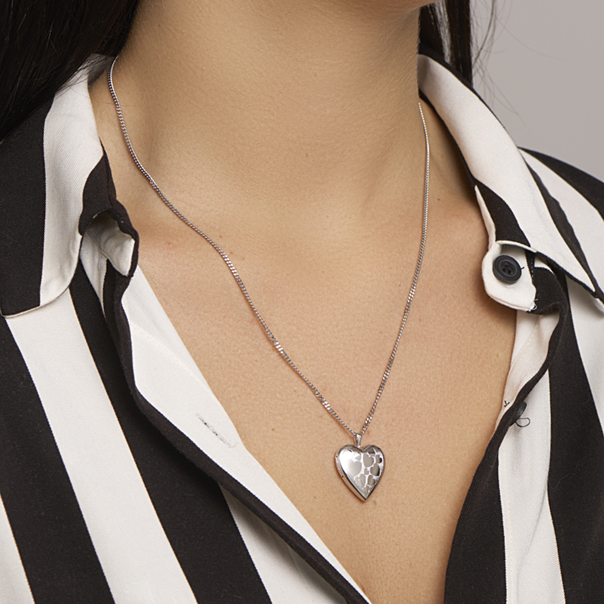 Beschrijving: Gerhodineerd zilveren hart medaillon. In dit medaillon passen twee fotos.
