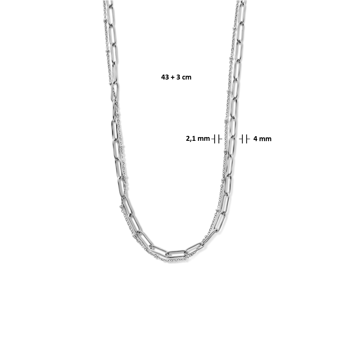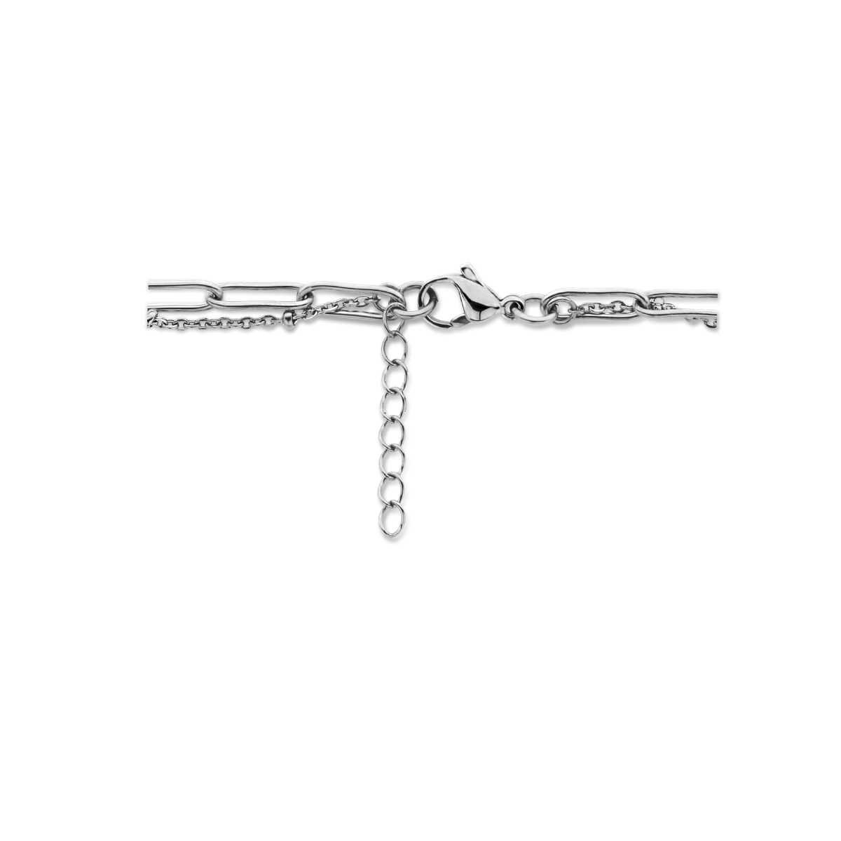 Stalen collier met een karabijn sluiting. Het collier heeft een draaglengte van 43cm met een extensie van 3cm.