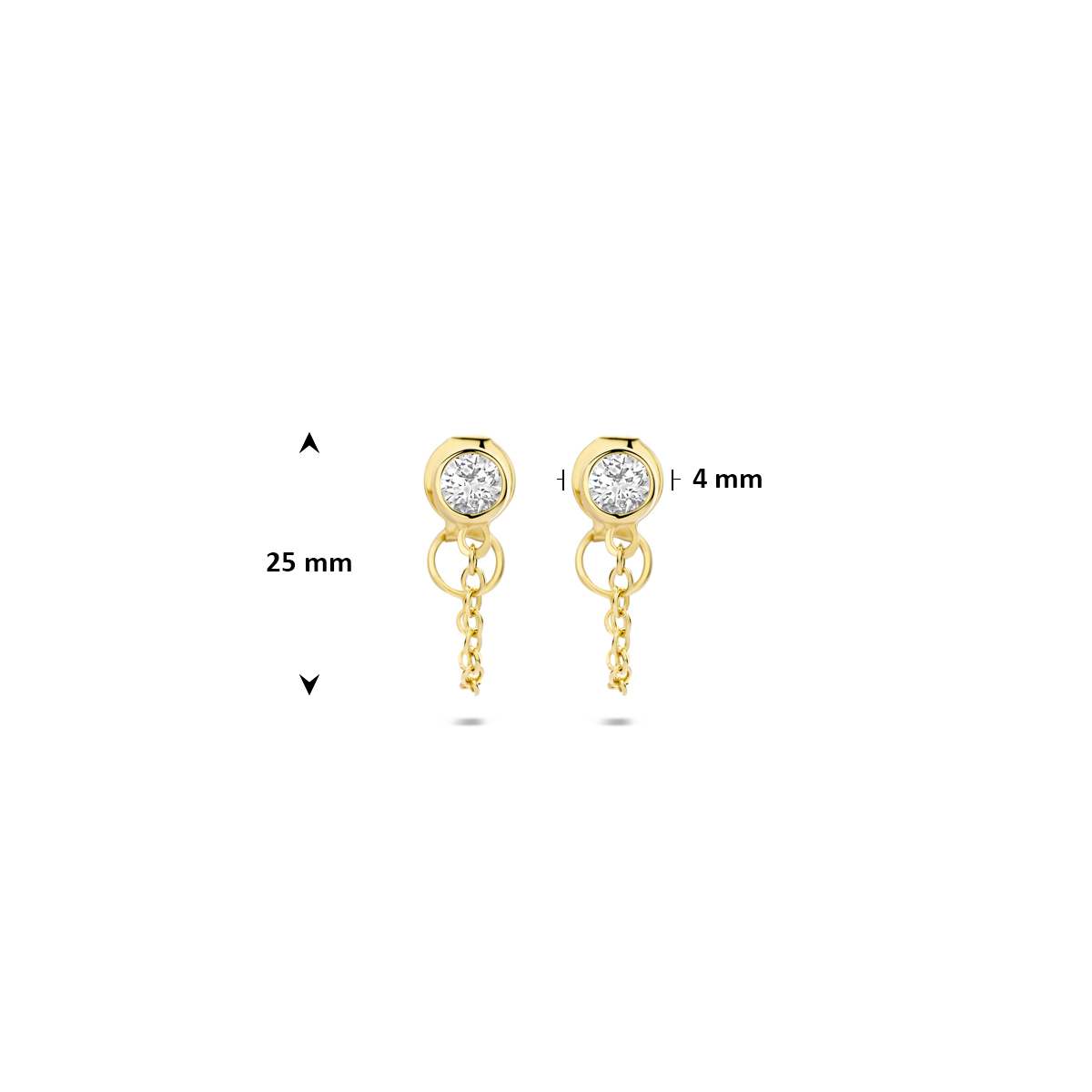 Verguld geel 925 zilveren oorbellen met zirkonia. De oorbellen hebben een totale hoogte van 25mm. Geen garantie op plating.
