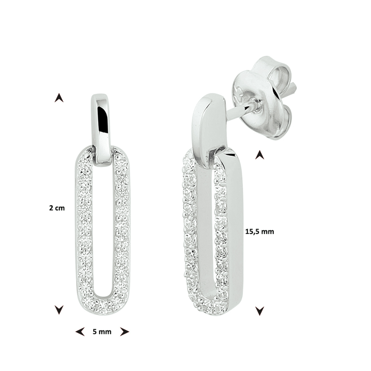 Gerhodineerd 925 zilveren oorhangers uitgevoerd met een schitterende zirkonia rij. De oorhangers hebben een afmeting van 20x5mm.