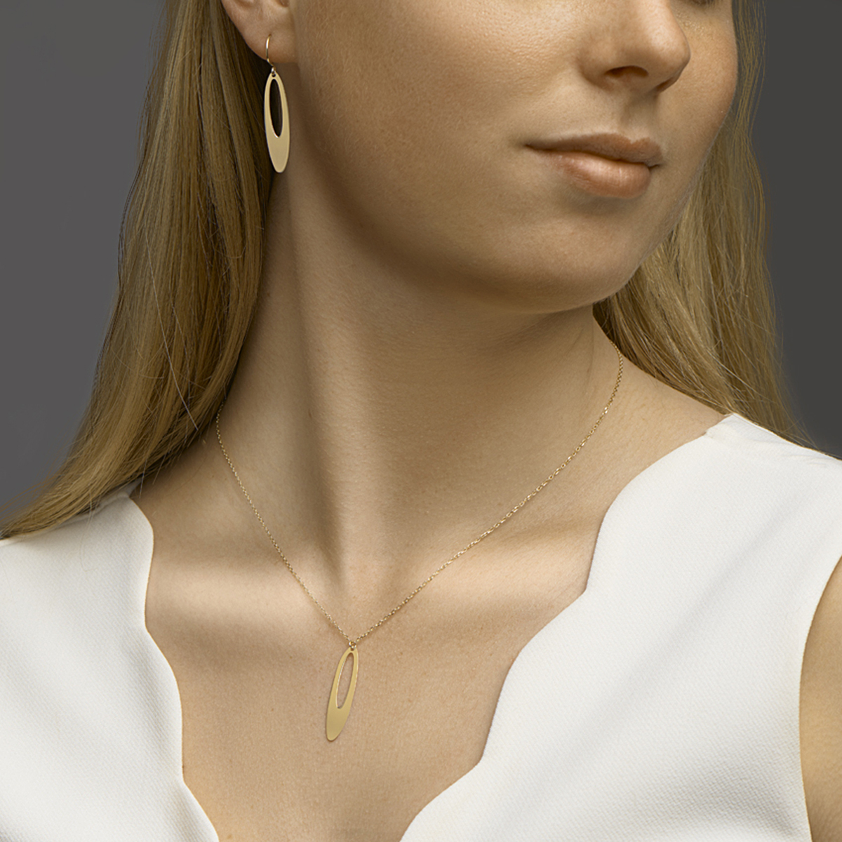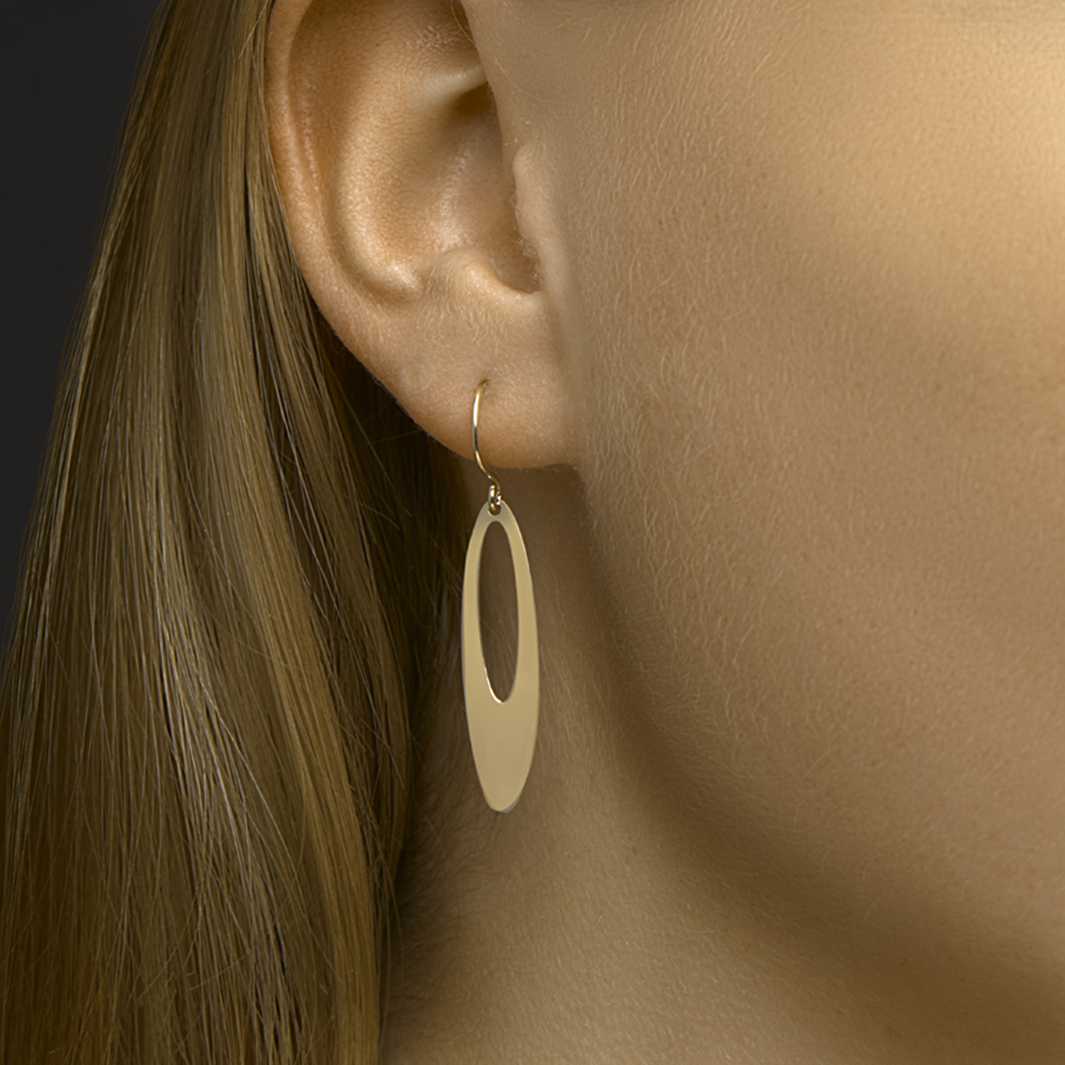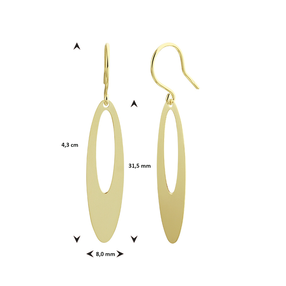 14k Geelgouden oorhangers. De oorhangers hebben een totale hoogte van 4.3cm en een breedte van 8mm.