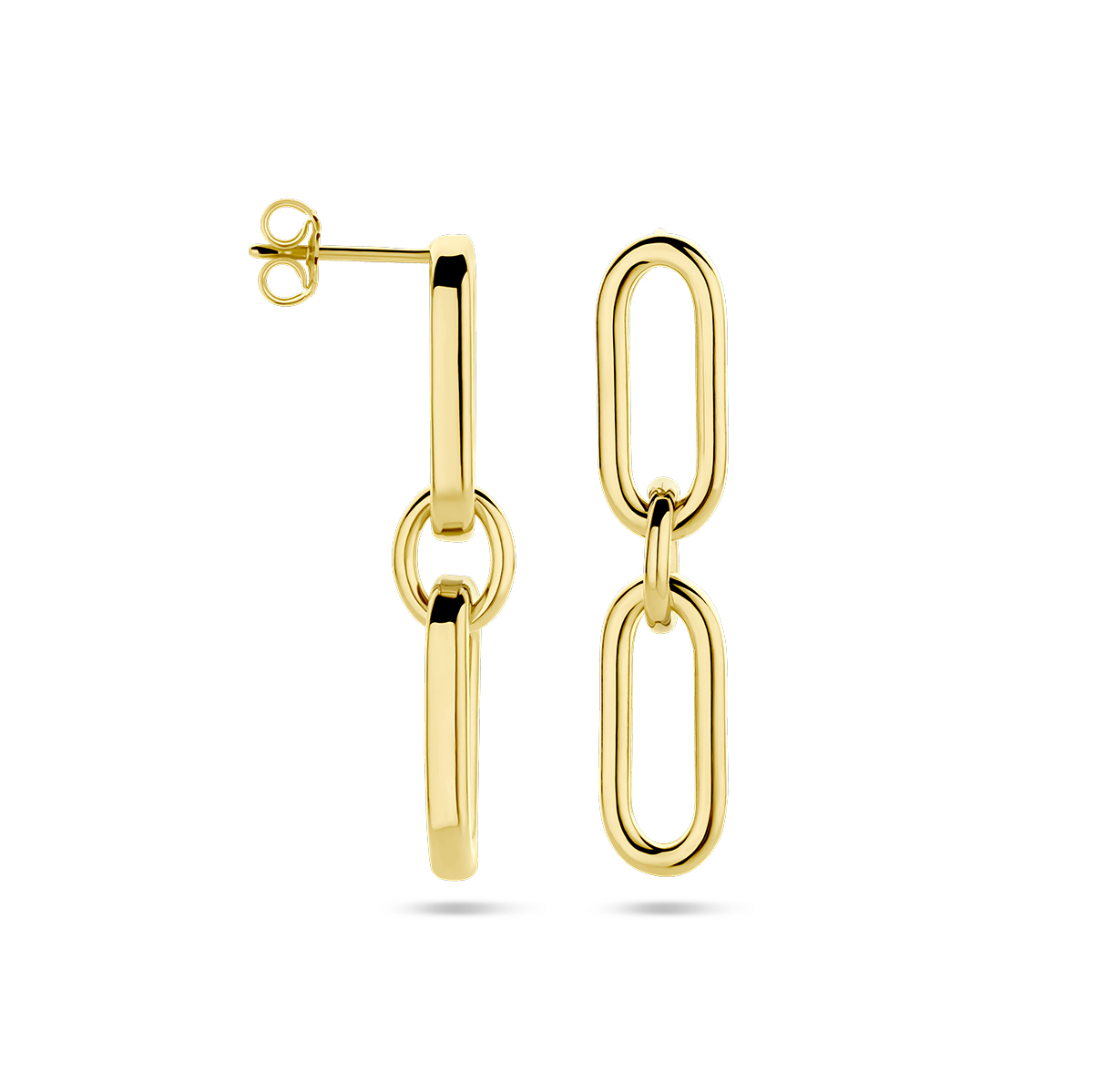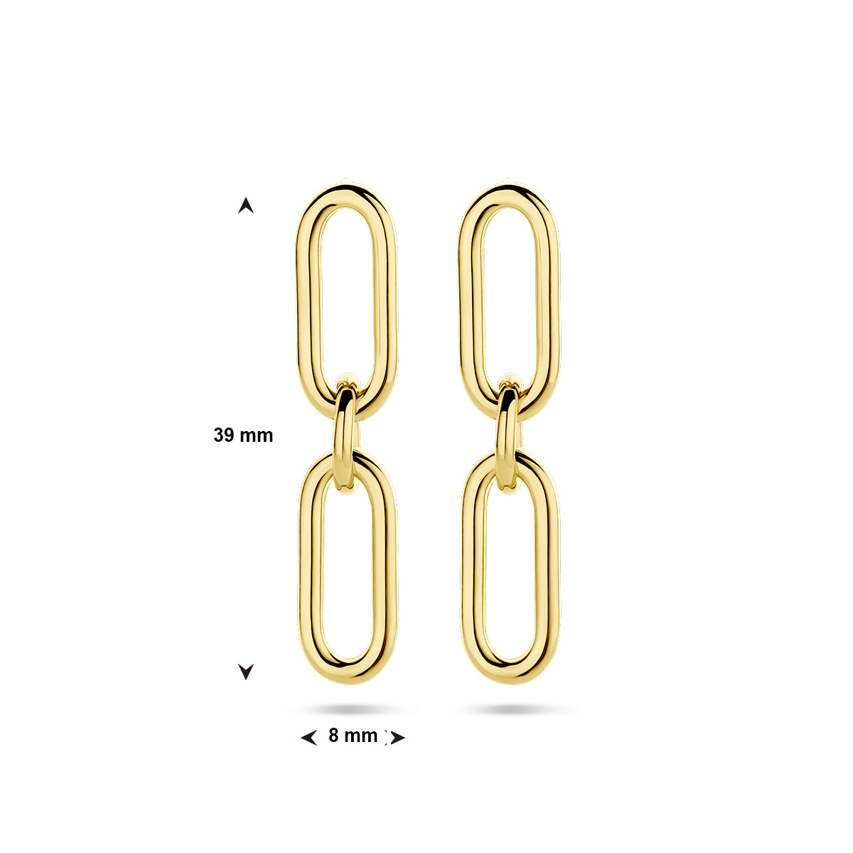 Geelgoud op 925 zilveren paperclip oorhangers. De oorhangers hebben een totale hoogte van 39mm. Geen garantie op plating.