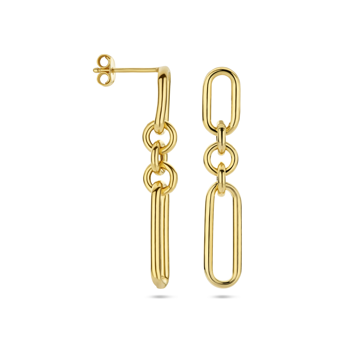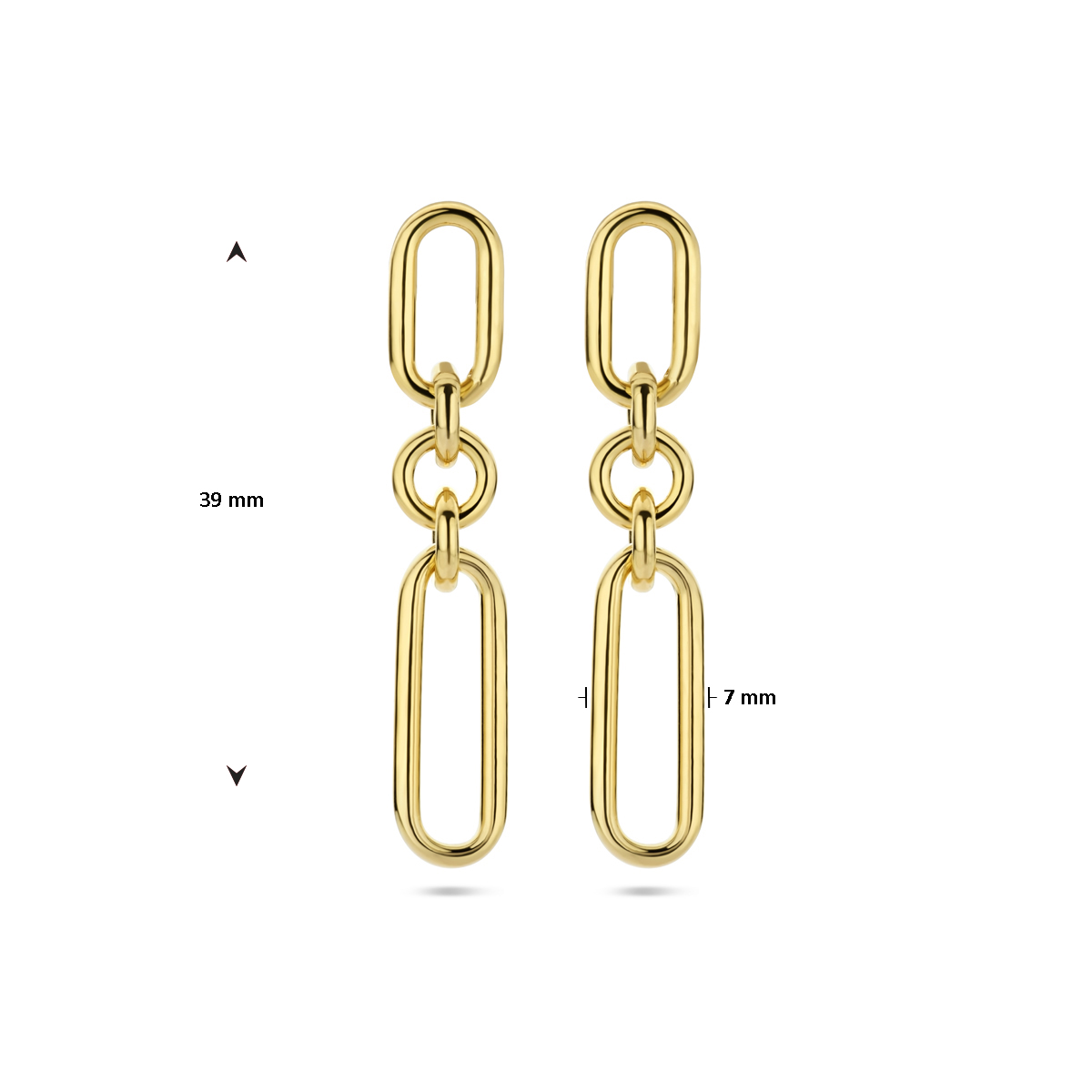 Geelgoud op 925 zilveren oorhangers met een totale hoogte van 39mm. Geen garantie op plating.