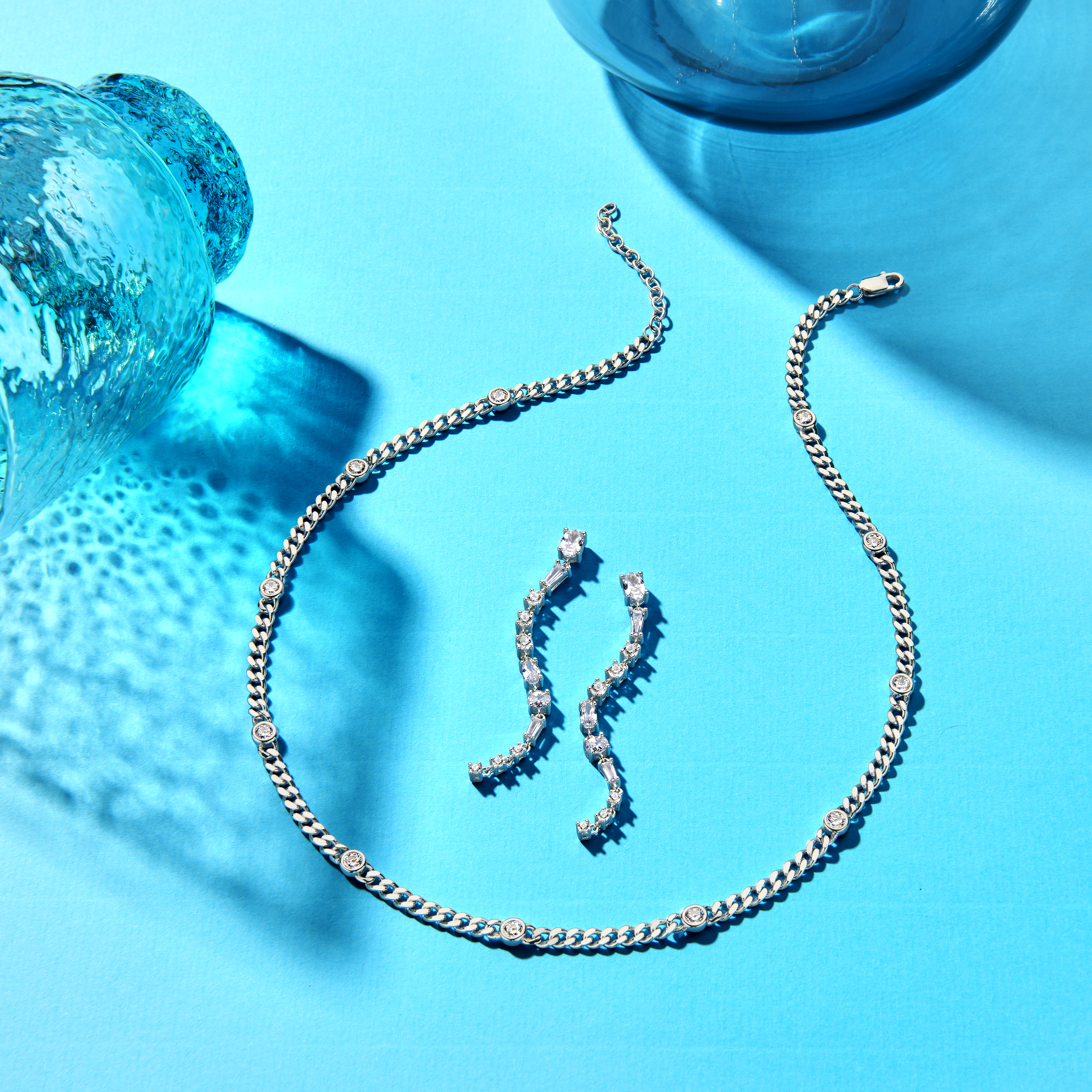 Gerhodineerd 925 zilveren oorhangers met een afmeting van 60x4.5. Uitgevoerd met zirkonia.