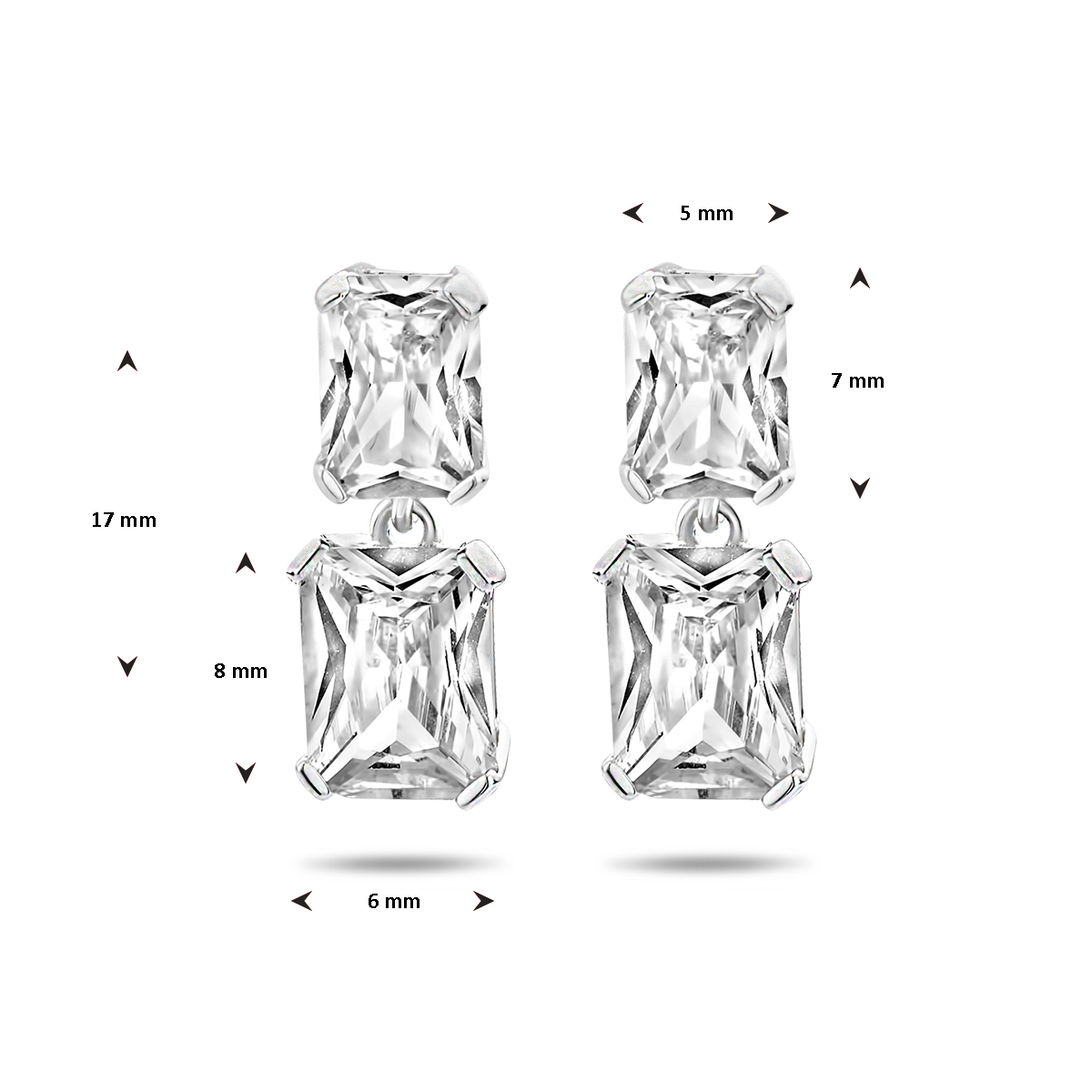 Gerhodineerd 925 zilveren oorhangers uitgevoerd met wit zirkonia. De oorhangers hebben een totale hoogte van 17mm.