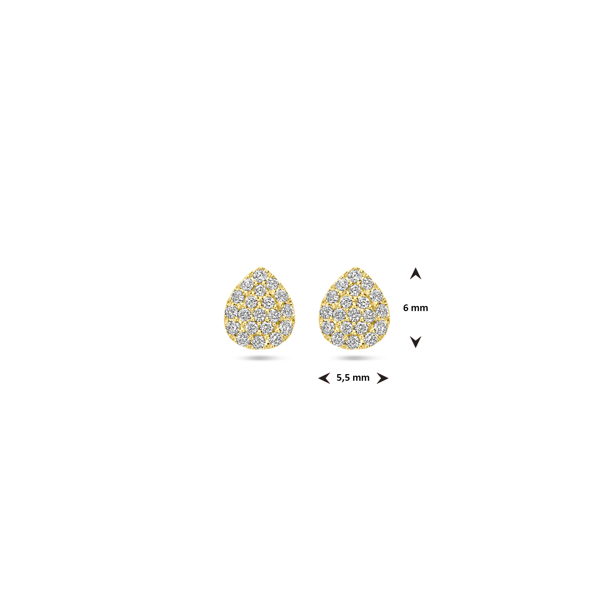 14k Geelgouden oorknoppen uitgevoerd in de vorm van een druppel met diamant. De oorknoppen hebben een afmeting van 6x5.5mm. Het totale diamantgewicht is 0.21ct.