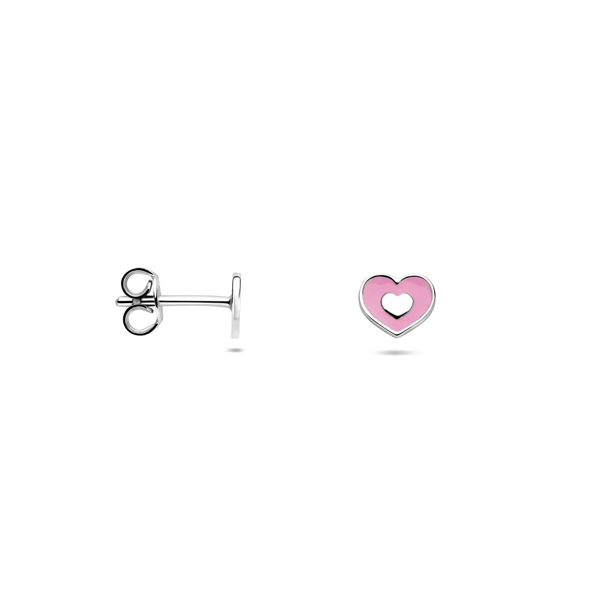 Gerhodineerd 925 zilveren oorknoppen uitgevoerd met emaille hartjes. De oorknoppen hebben een afmeting van 5x6mm.