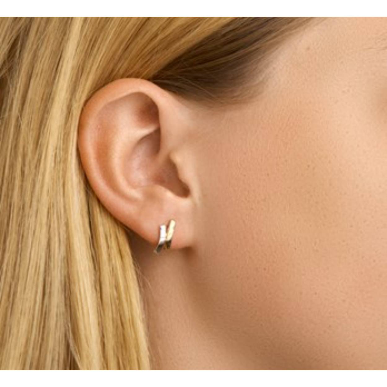14 Karaat bicolor wit- en geelgouden oorknoppen met een poli afwerking.