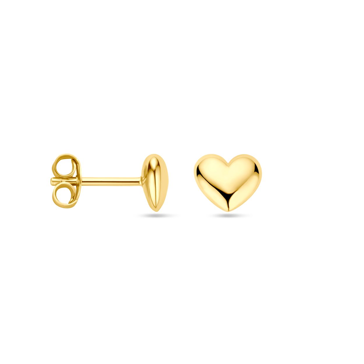 Geelgoud op 925 zilveren oorknoppen uitgevoerd met een hartje. De oorknoppen hebben een afmeting van 6x6.5mm. Geen garantie op de plating.
