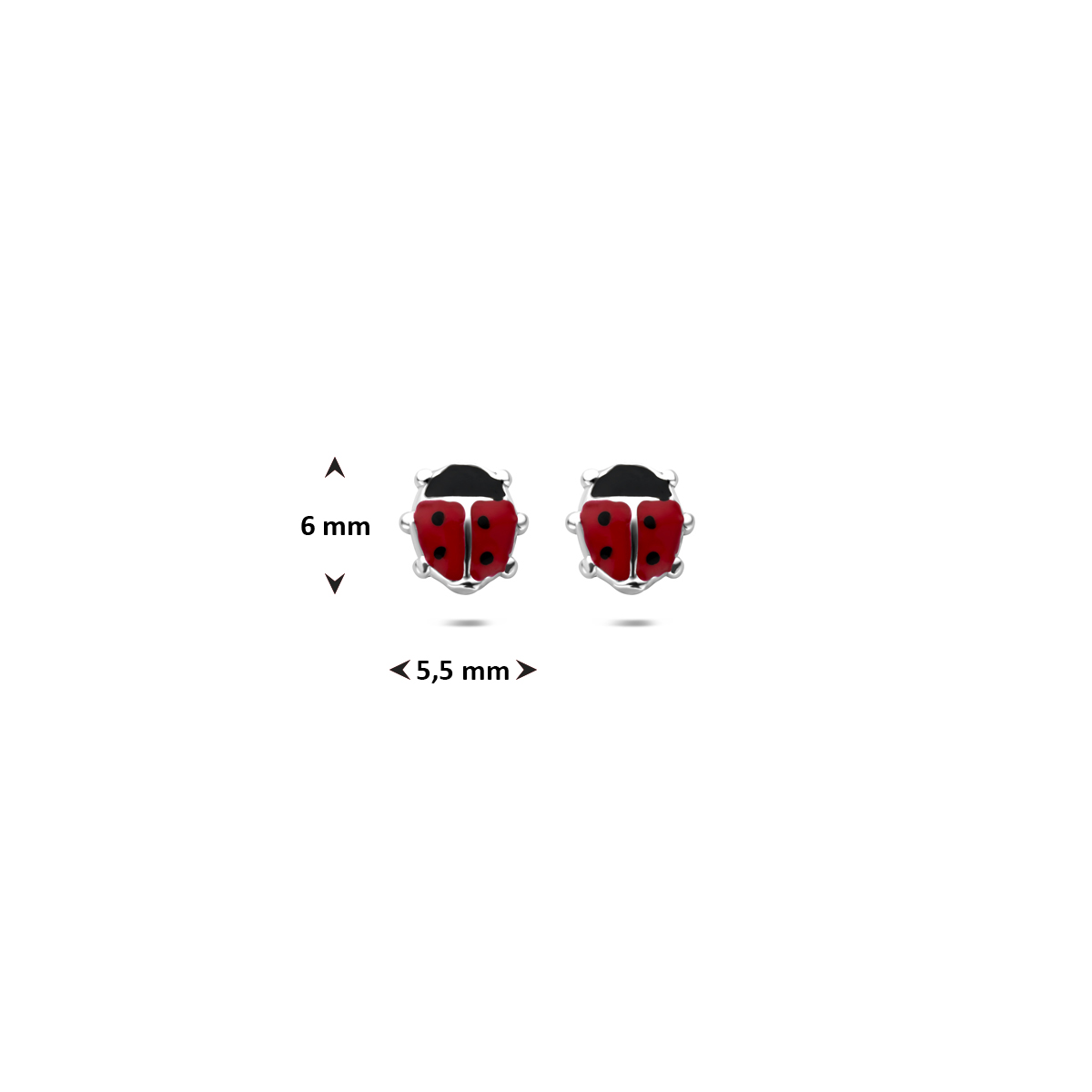 Gerhodineerd 925 zilveren oorknoppen uitgevoerd in de vorm van een lieveheersbeestje. De oorknoppen hebben een afmeting van 6x5,5mm.