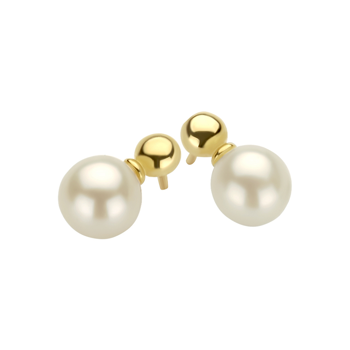 Beschrijving: Stijlvolle geelgouden oorknoppen met een afmeting van 9x5.5mm uitgevoerd met een schitterende zoetwaterparel van 5.5mm .De schitterende blinkende zoetwaterparel zorgt ervoor dat dit sieraad elke outfit fabulous zal maken!.