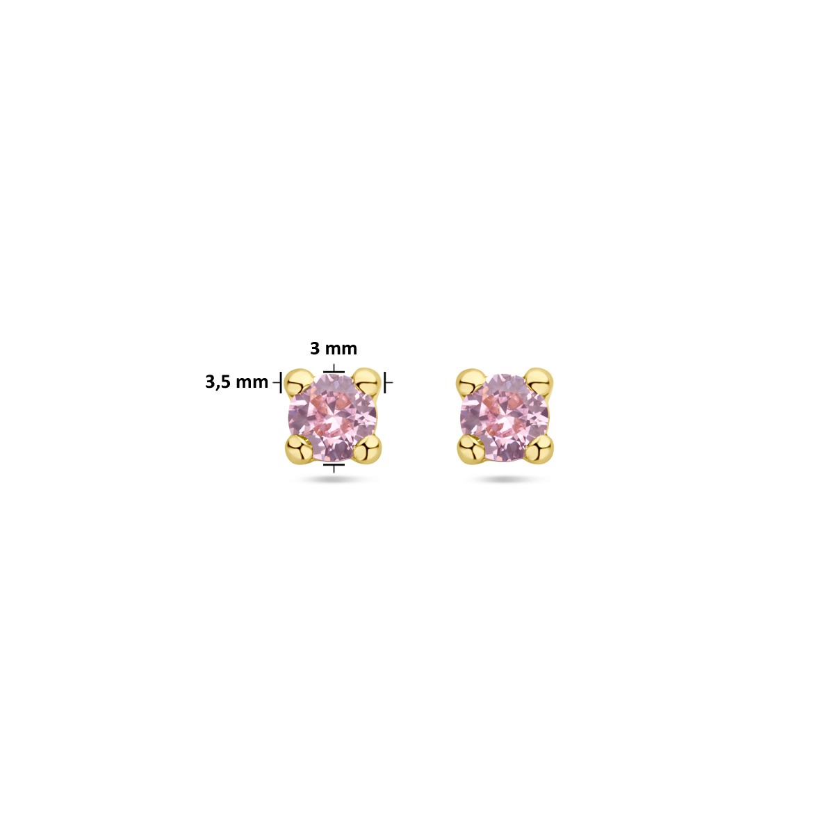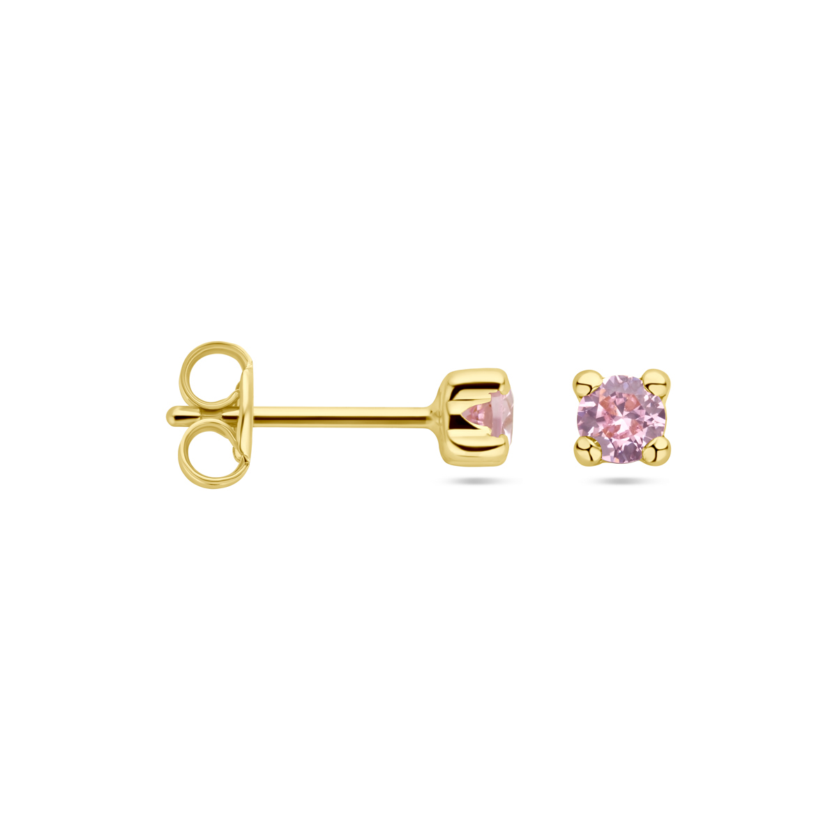 14k Geelgouden oorknoppen uitgevoerd met roze zirkonia.