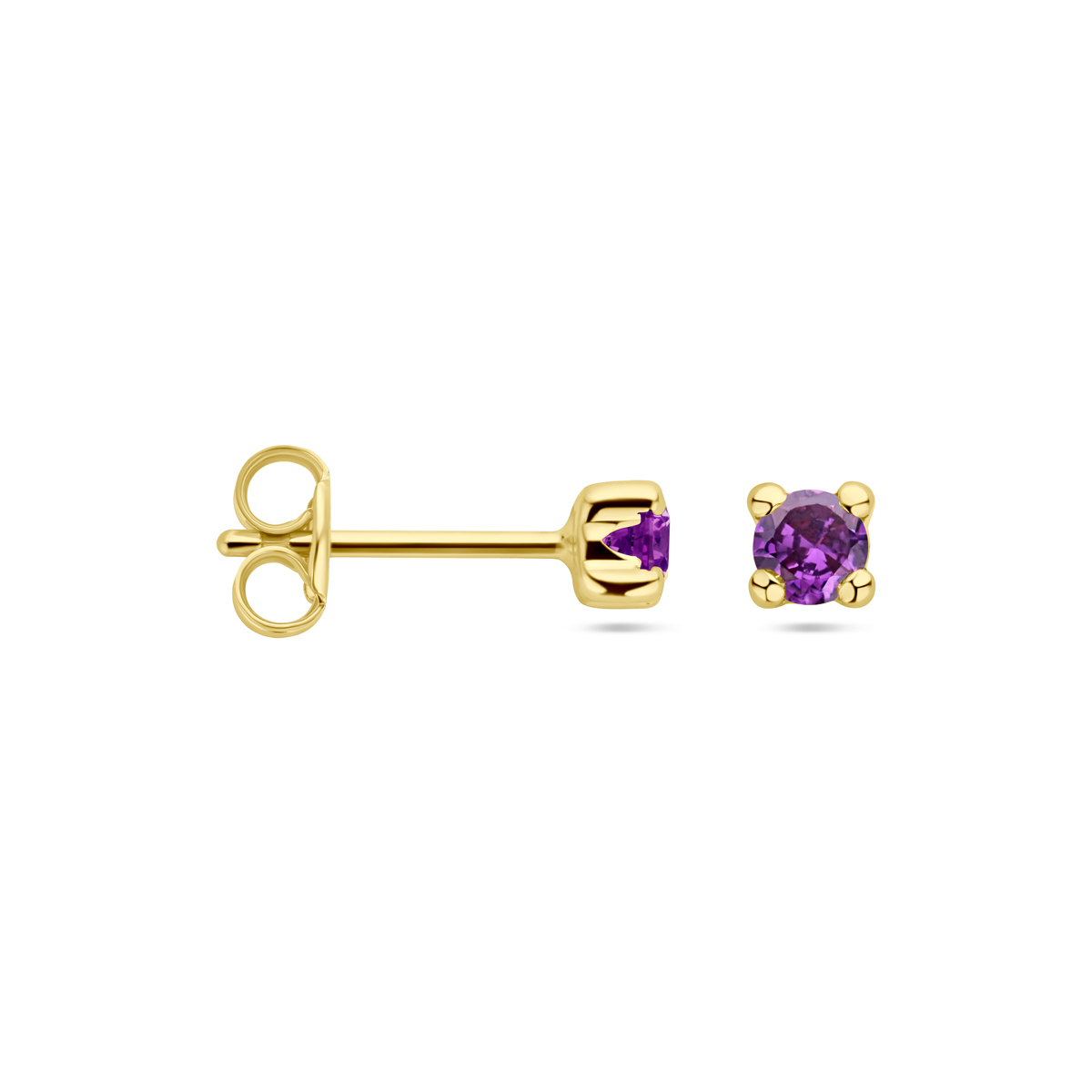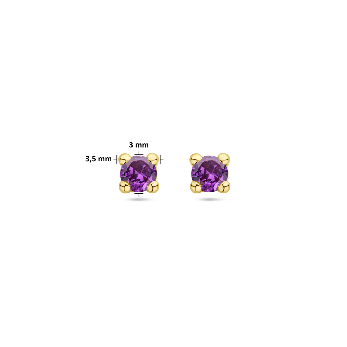 14k Geelgouden oorknoppen uitgevoerd met synthetisch amethist.