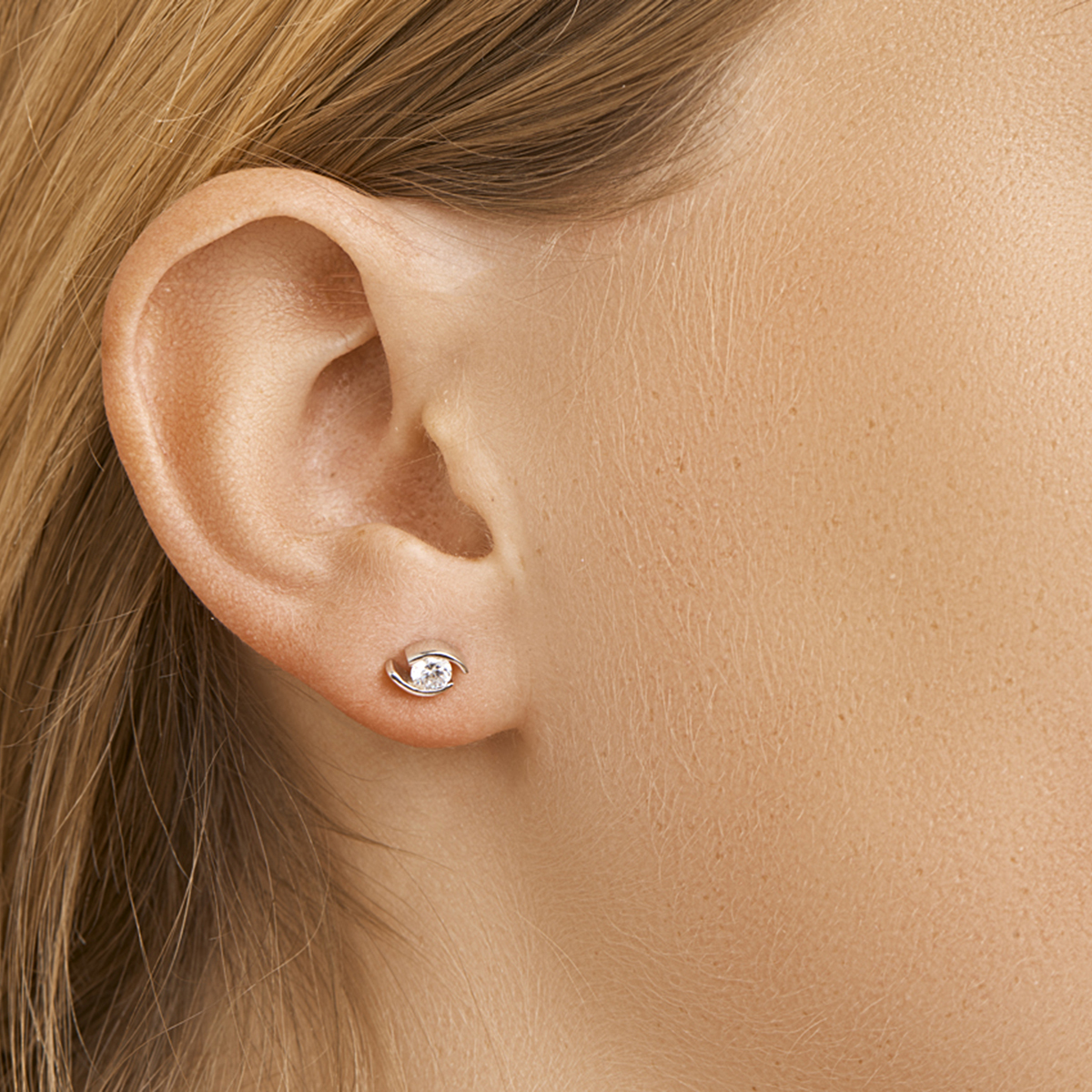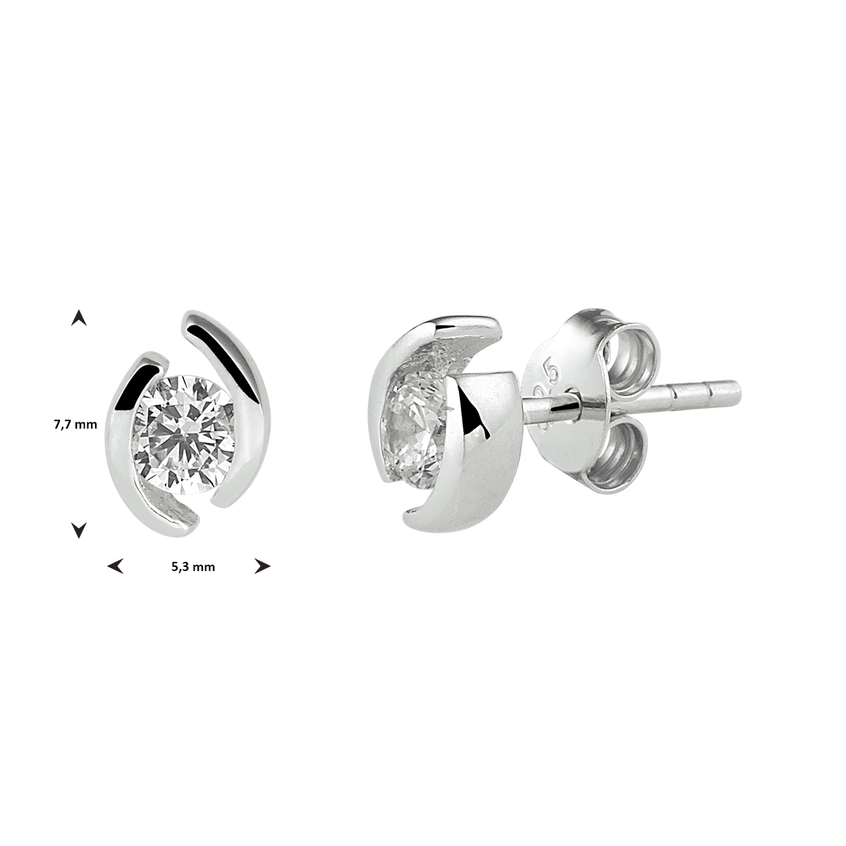 Beschrijving: Gerhodineerd zilveren oorknoppen met zirkonia.