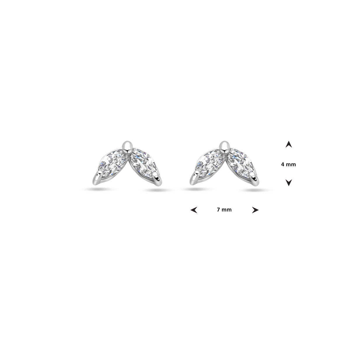 Gerhodineerd 925 zilveren oorknoppen uitgevoerd met zirkonia. De oorknoppen hebben een afmeting van 4x7mm.